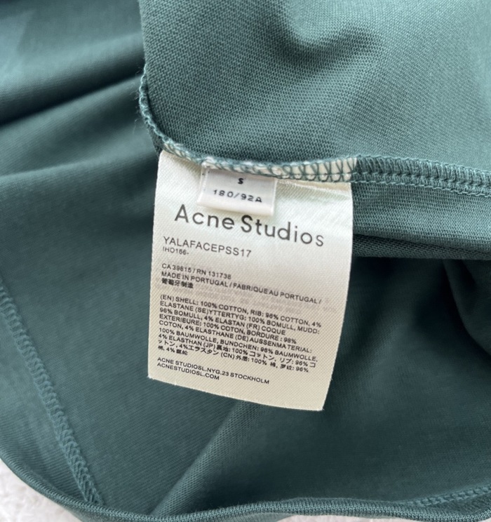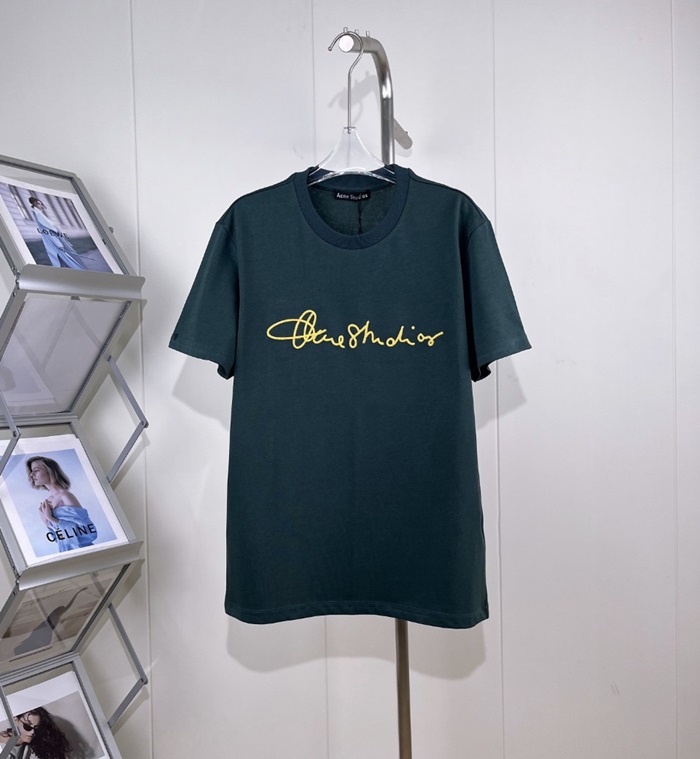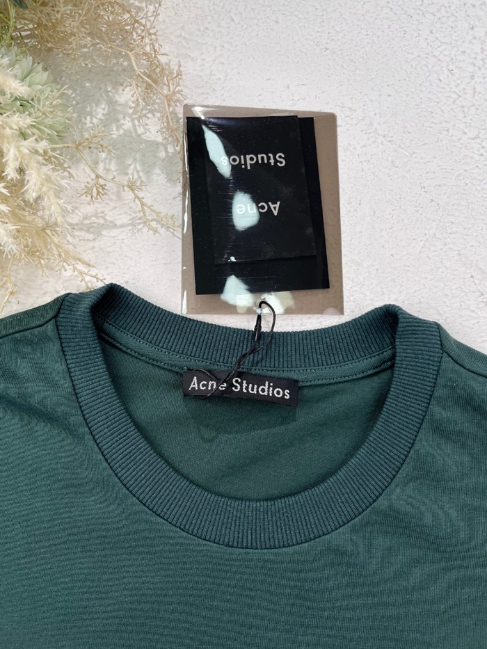 アクネストゥディオズユニセックスグリーンクルーネック半袖Tシャツe193
