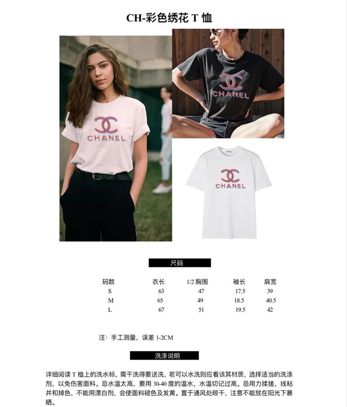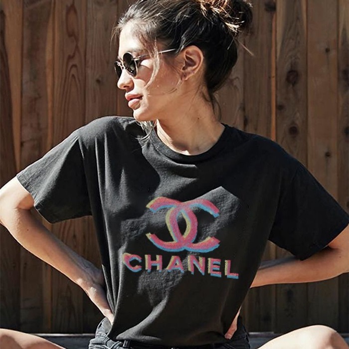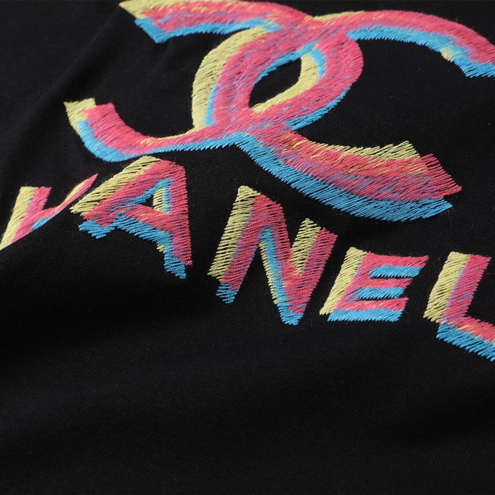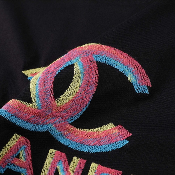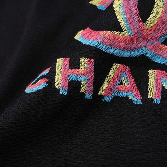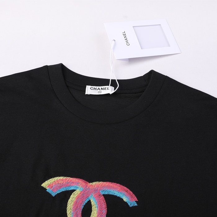 シャネルレディースクルーネックブラック半袖Tシャツh94