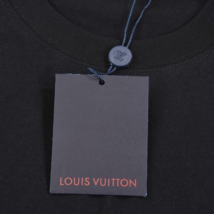 ルイヴィトンメンズブラッククルーネック半袖Tシャツv693