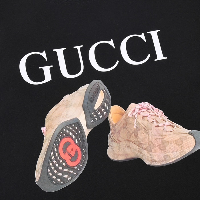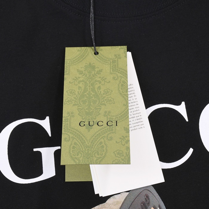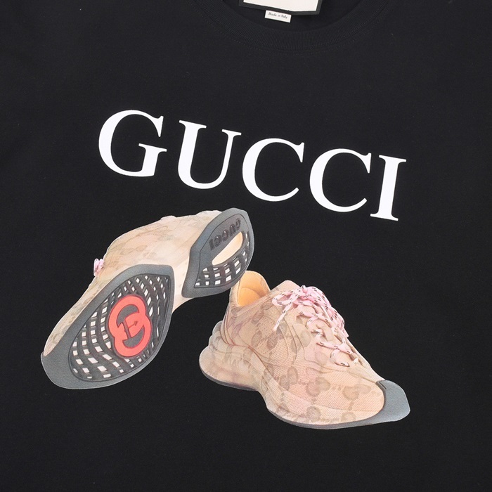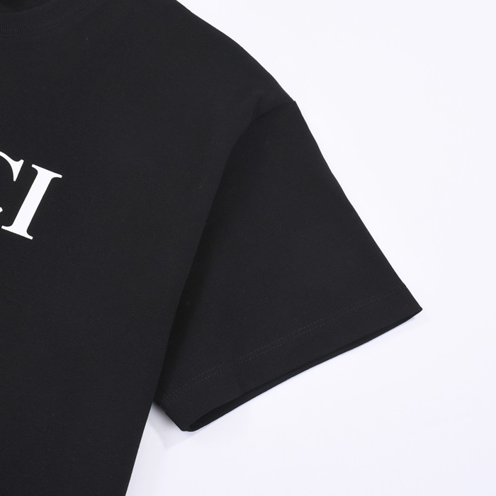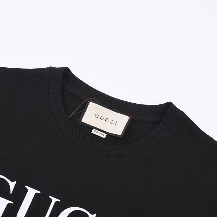 グッチユニセックスブラッククルーネック半袖Tシャツu538