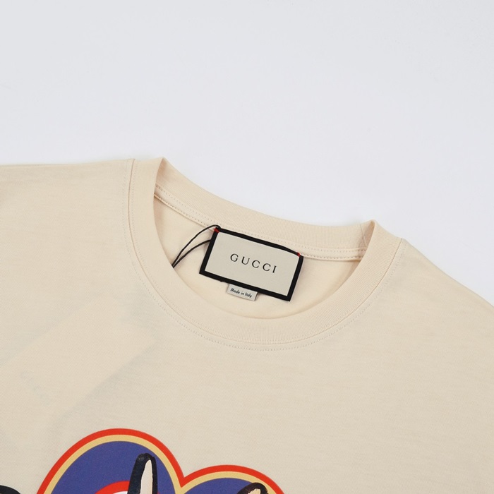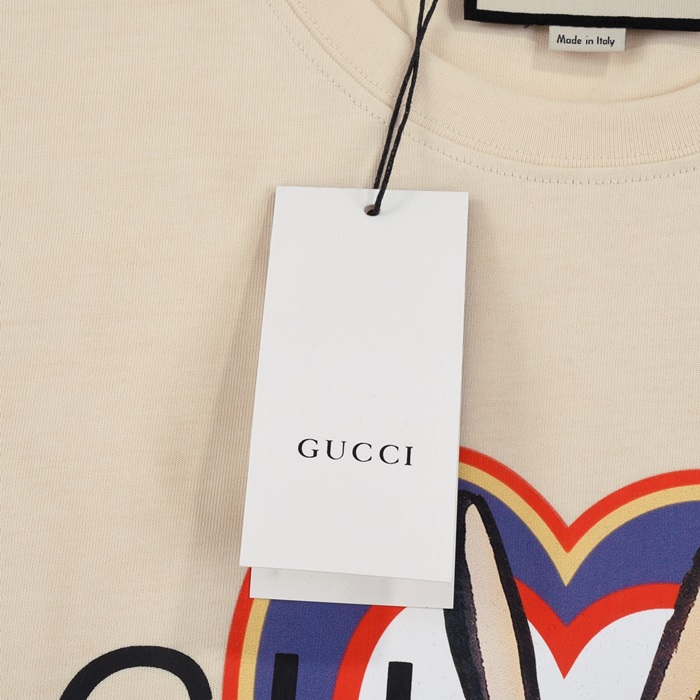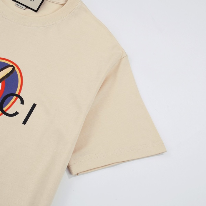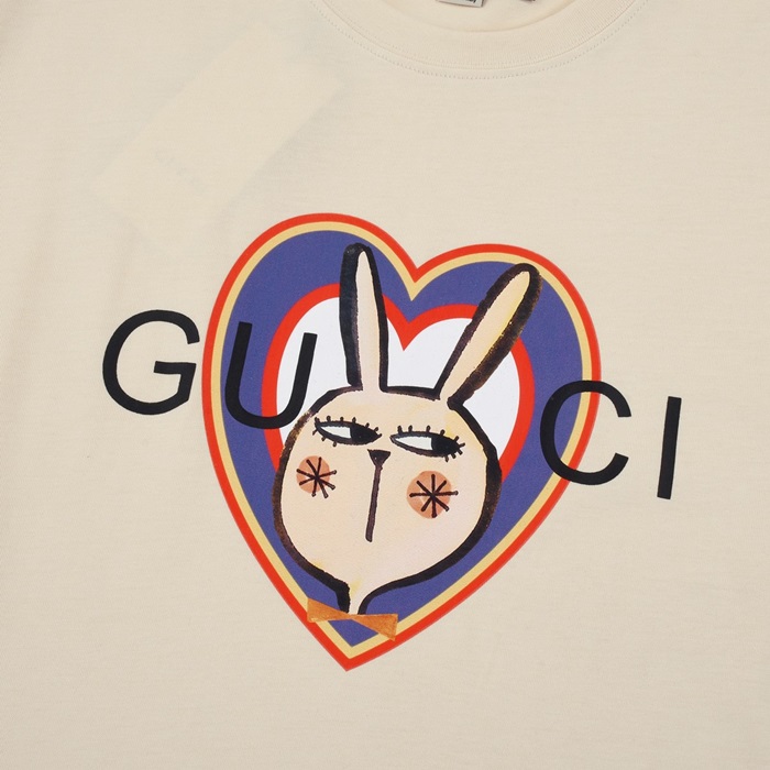 グッチユニセックスアイボリークルーネック半袖Tシャツu541