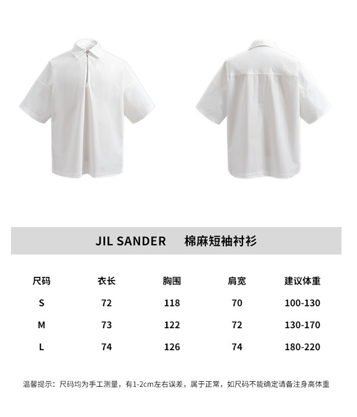 ジルサンダーメンズホワイト半袖シャツl68