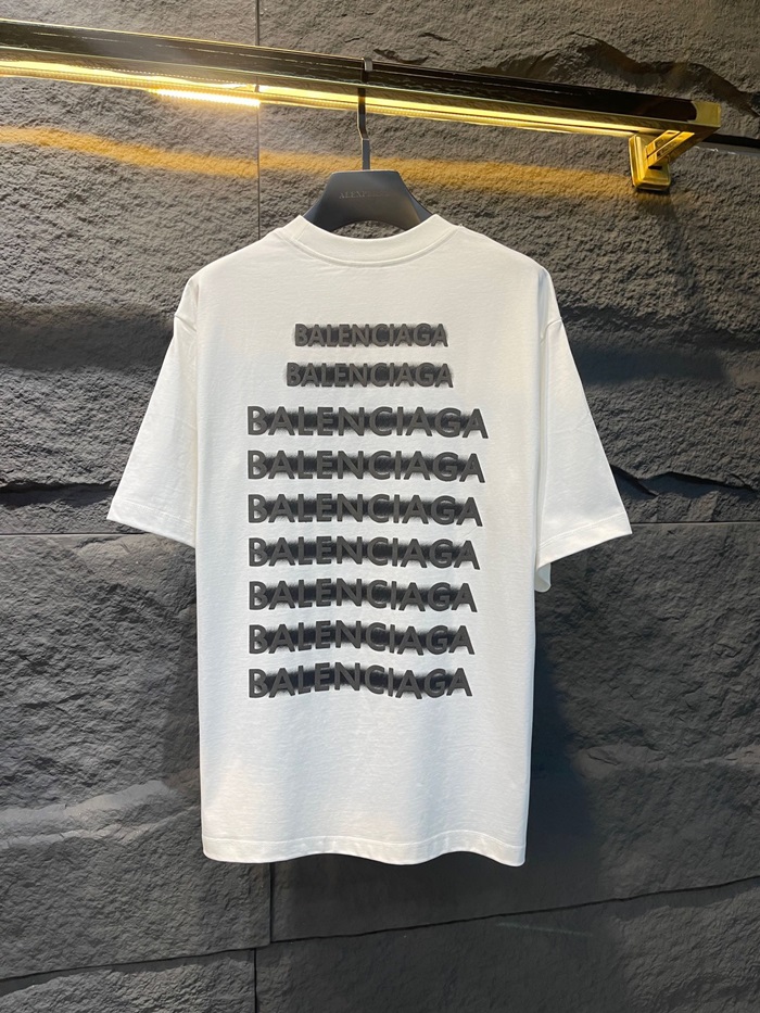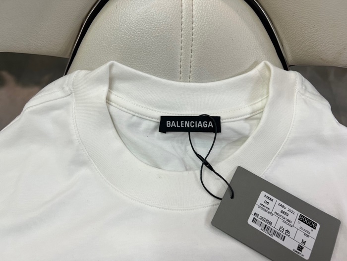 バレンシアガメンズホワイトクルーネック半袖Tシャツa250