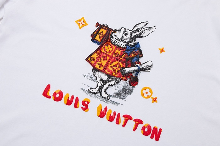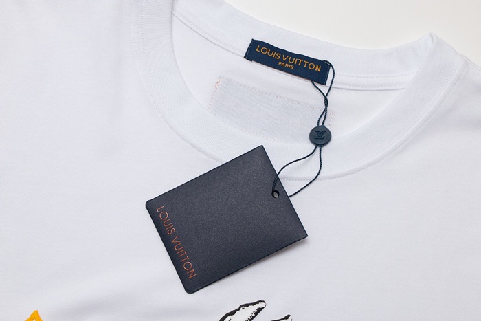 ルイヴィトンメンズホワイトクルーネック半袖Tシャツv700
