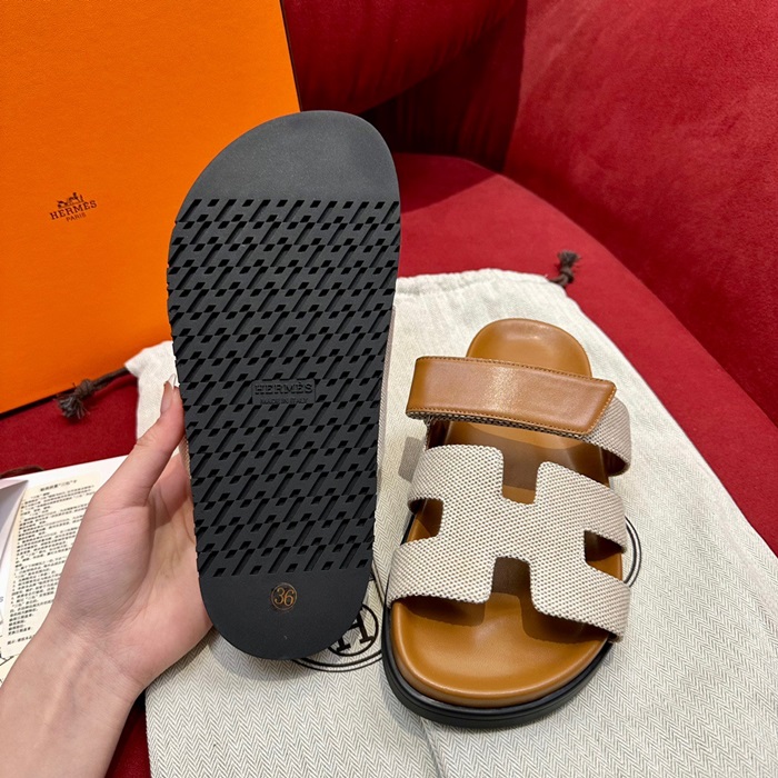 エルメスレディースキャメルスリッパe102