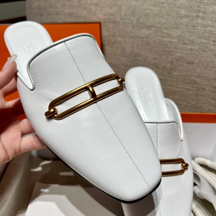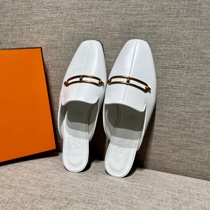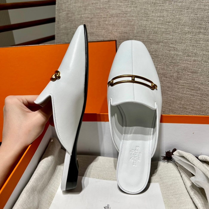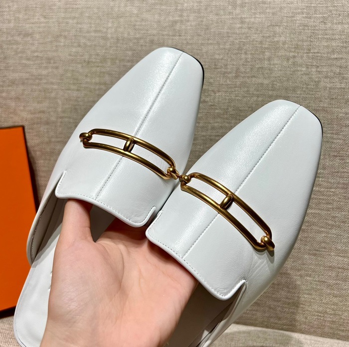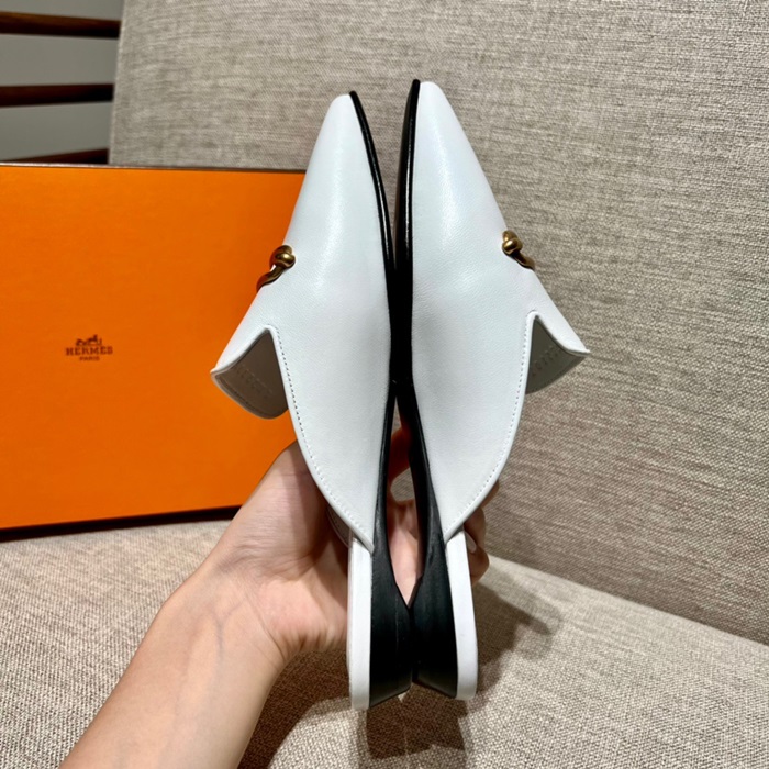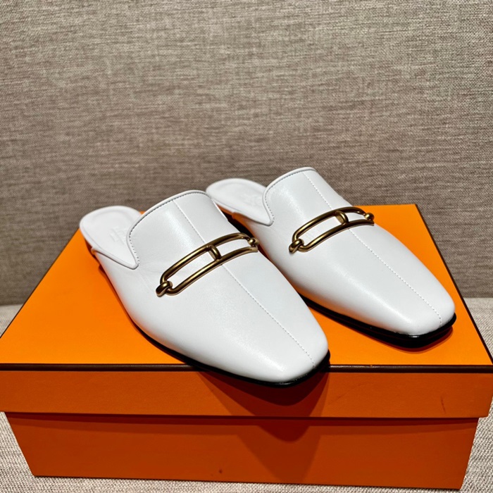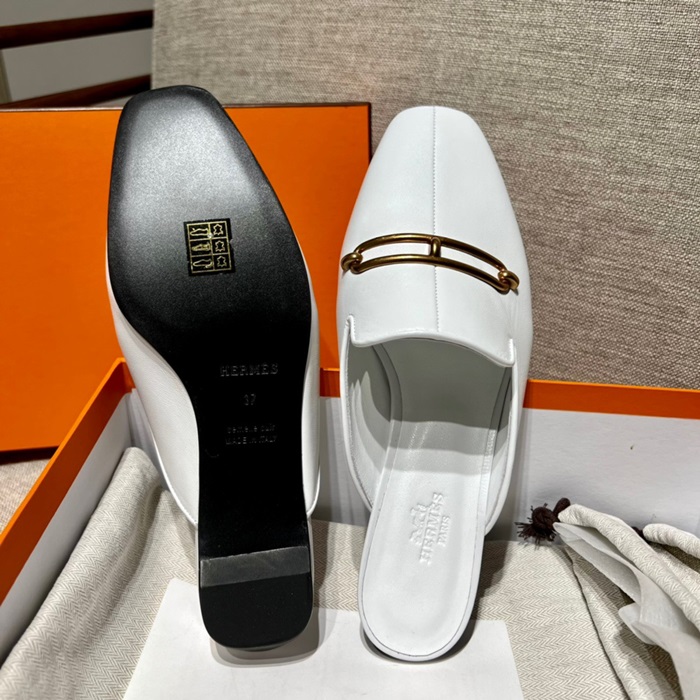 エルメスレディースホワイトブローファーe122