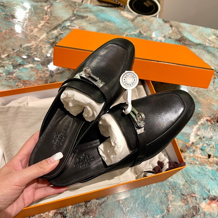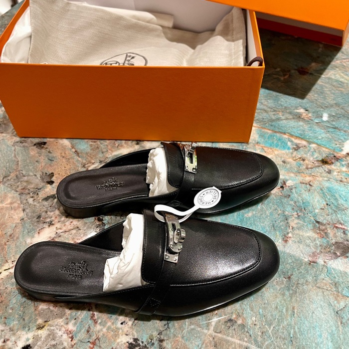 エルメスレディースブラックブローファーe130
