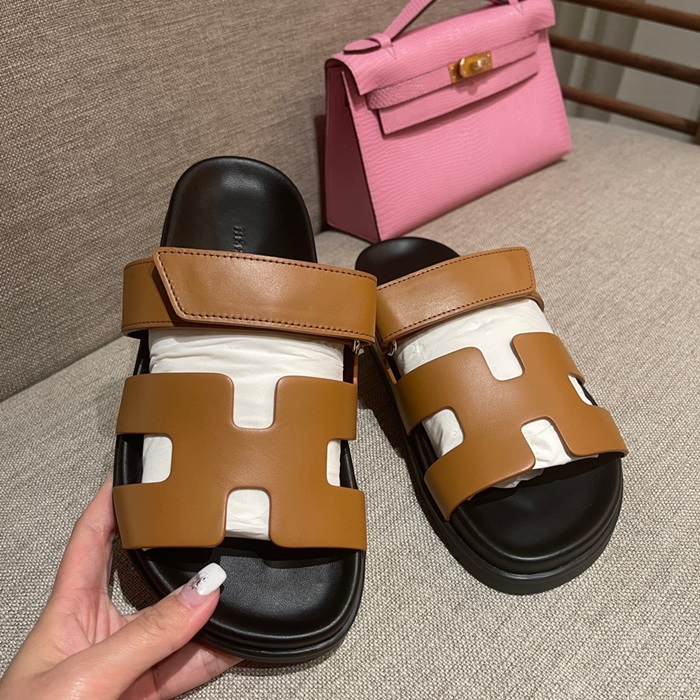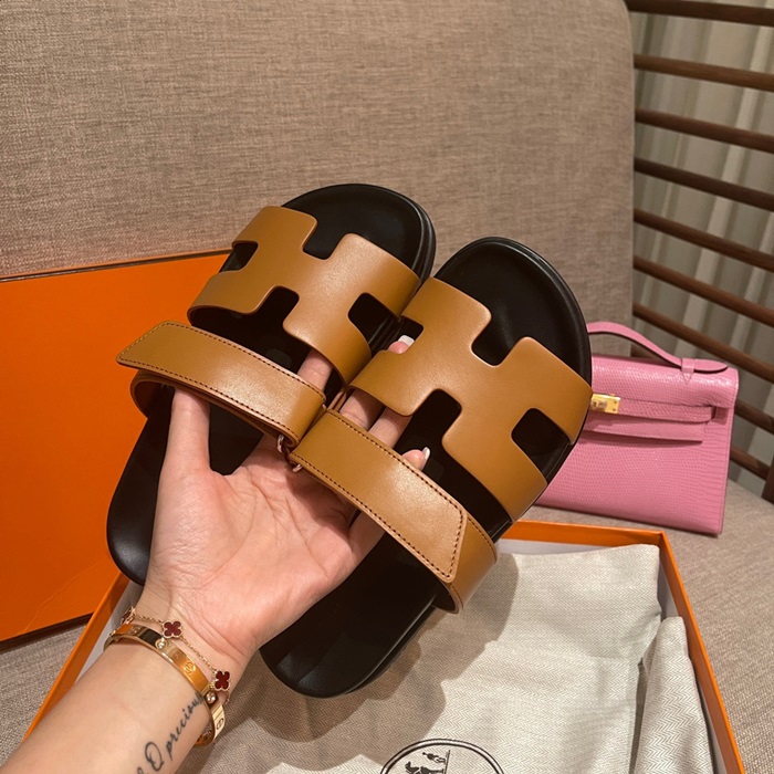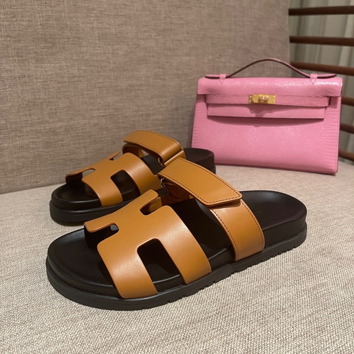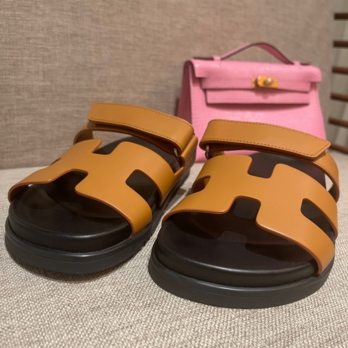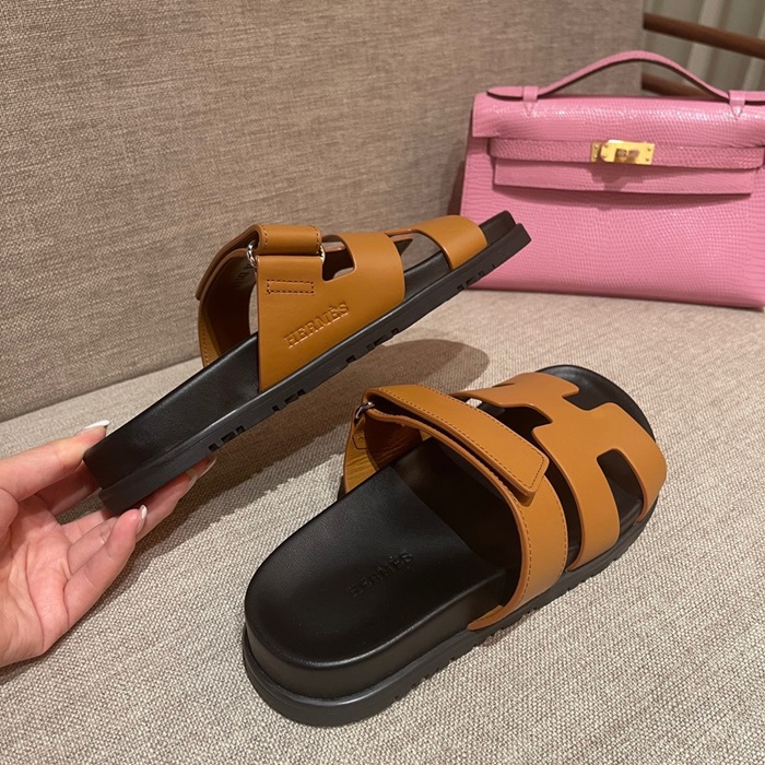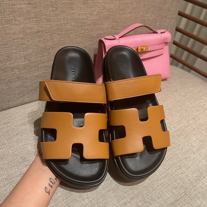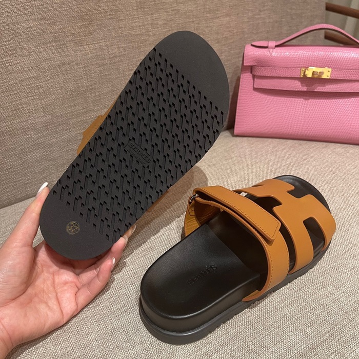 エルメスレディースキャメルスリッパe131