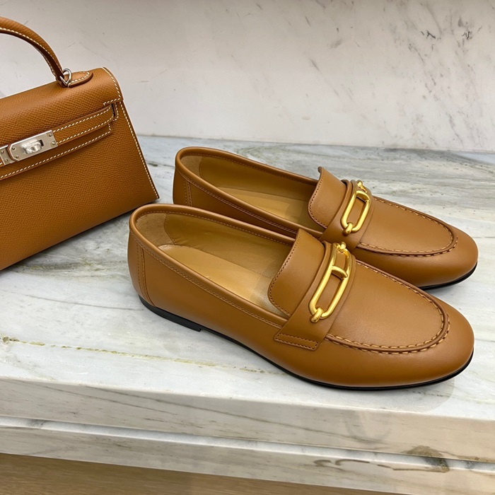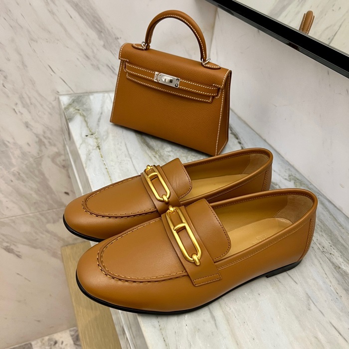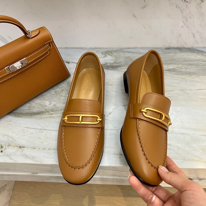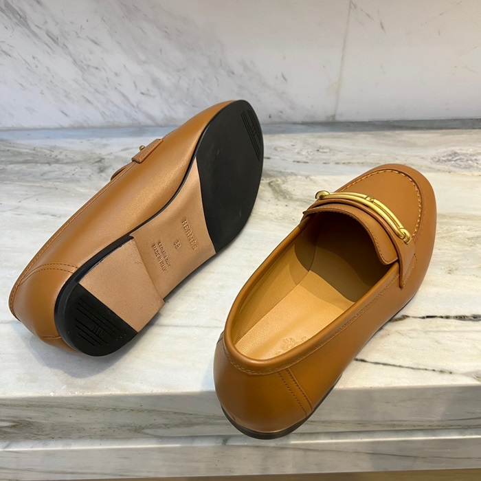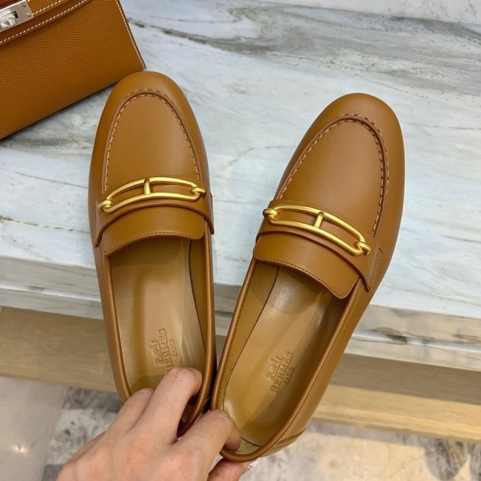 エルメスレディースキャメルローファーe144