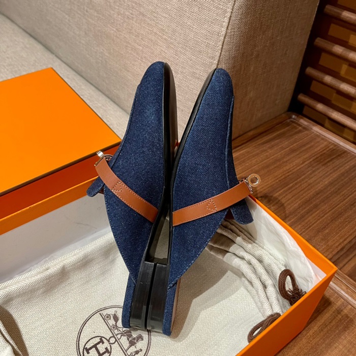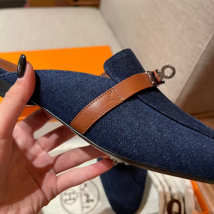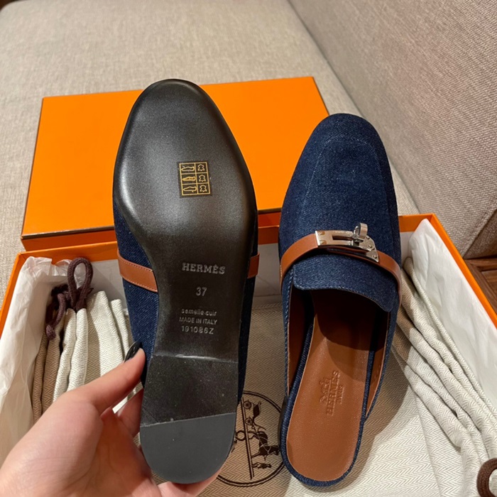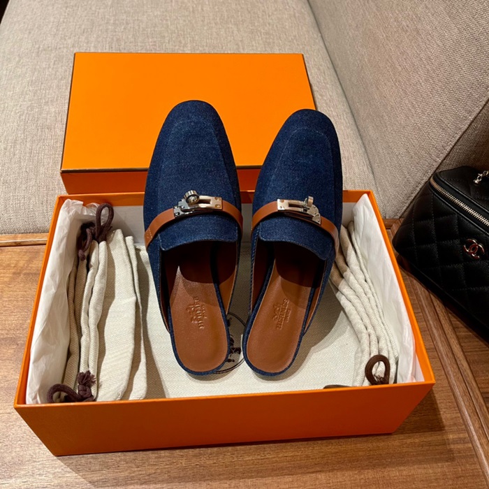 エルメスレディースブルーケリーブローファーe148