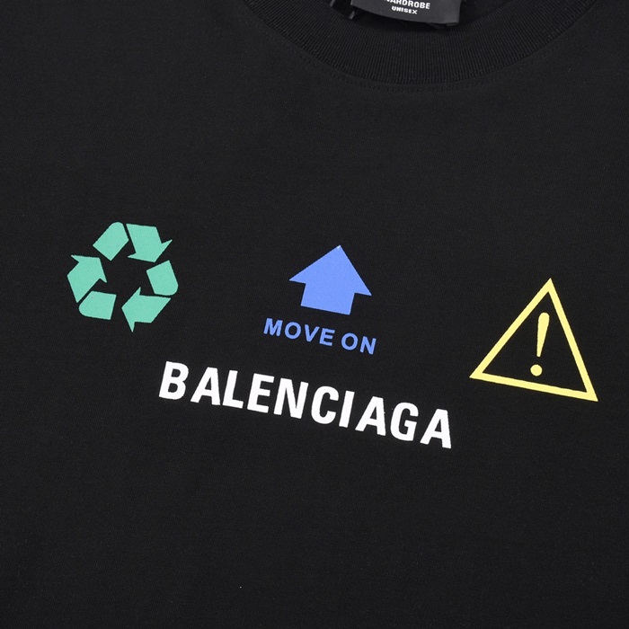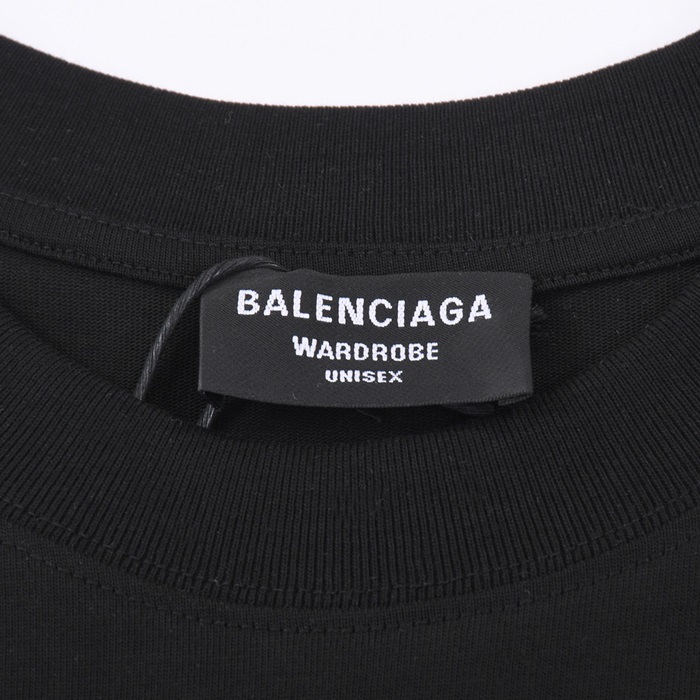 バレンシアガメンズクルーネックブラック半袖Tシャツa270