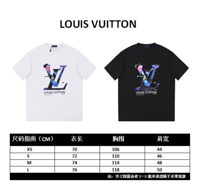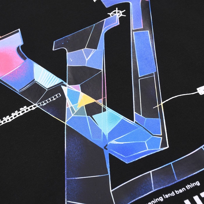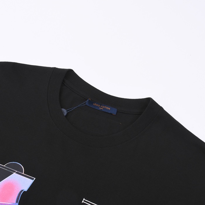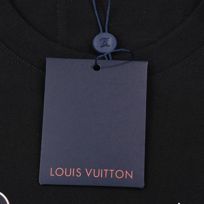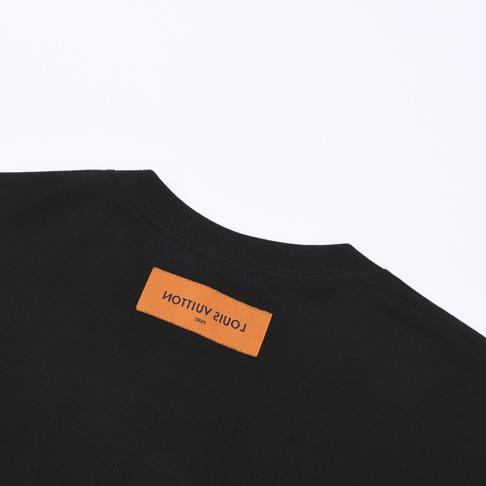 ルイヴィトンメンズブラッククルーネック半袖Tシャツv707