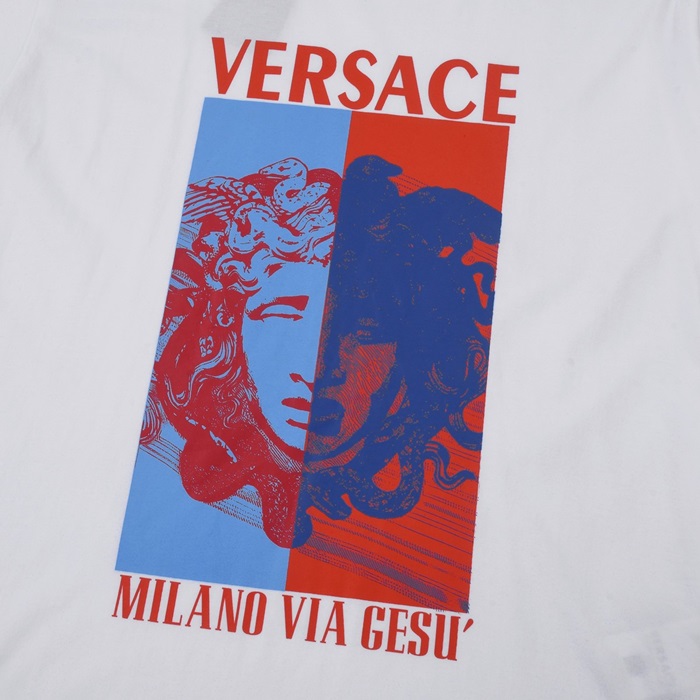 ヴェルサーチェメンズホワイトクルーネック半袖Tシャツe09