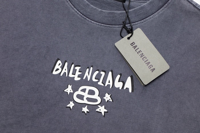 バレンシアガメンズクルーネックグレー半袖Tシャツa271