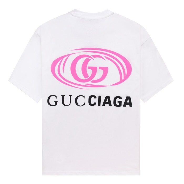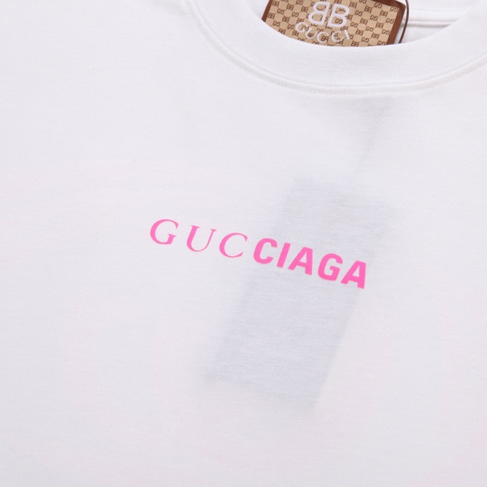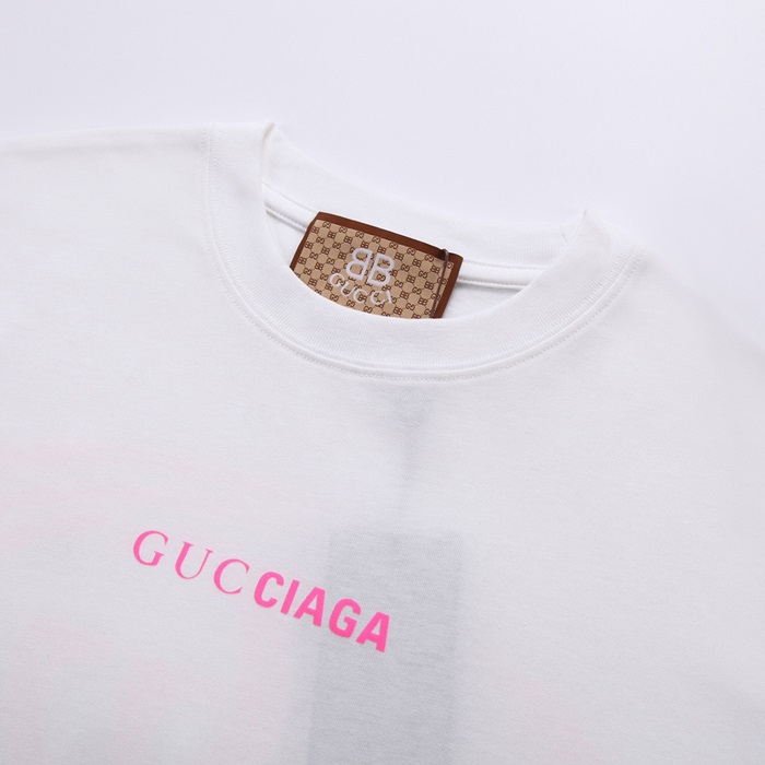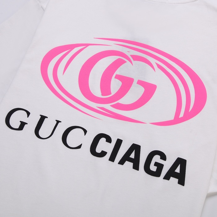 グッチユニセックスホワイトクルーネック半袖Tシャツu573
