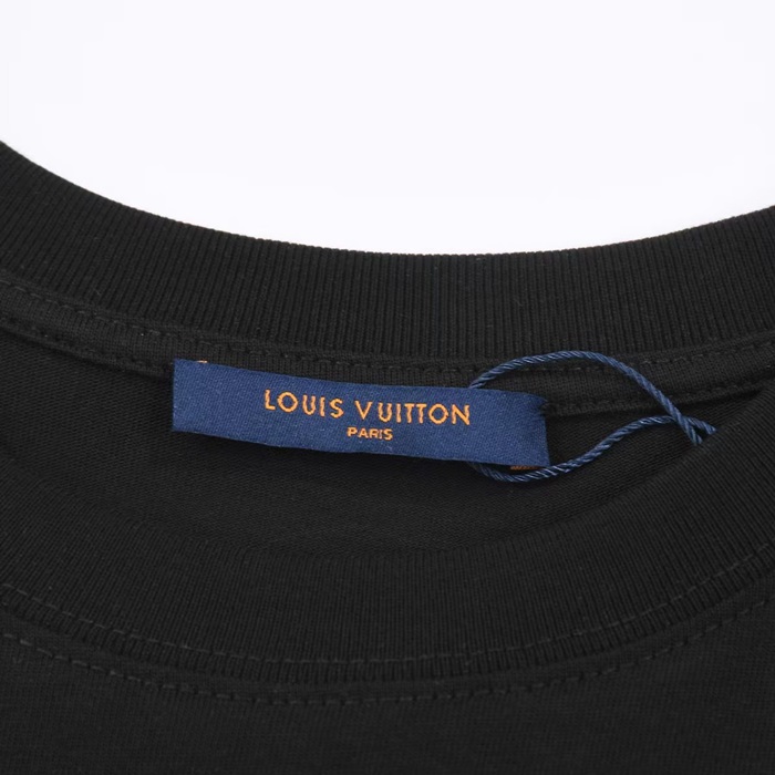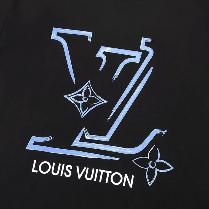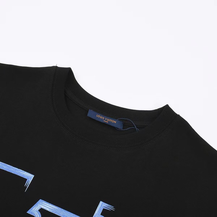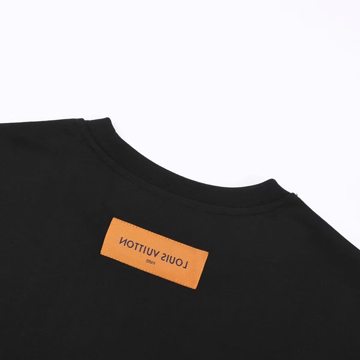 ルイヴィトンメンズブラッククルーネック半袖Tシャツv716