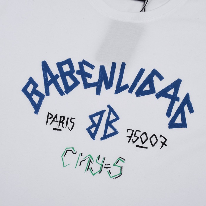 バレンシアガメンズホワイトクルーネック半袖Tシャツa281