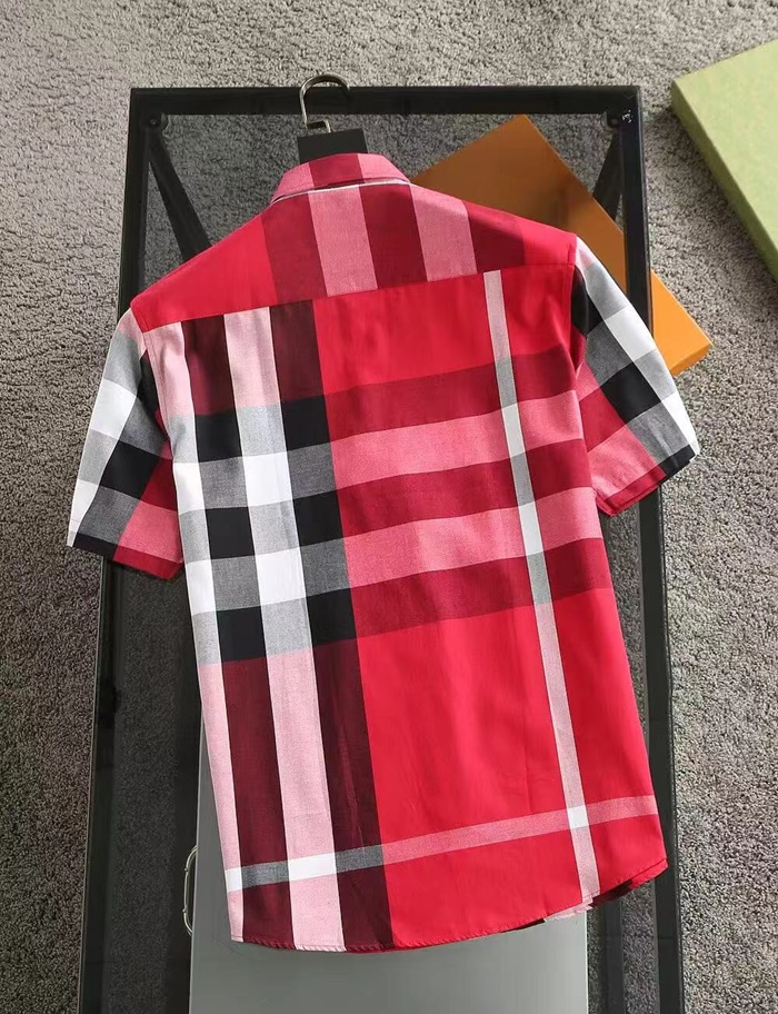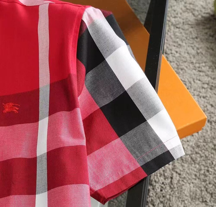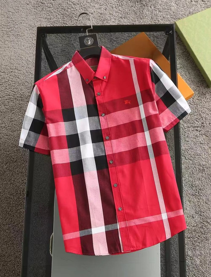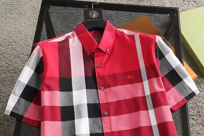 バーバリーメンズベーシックレッド半袖シャツu144