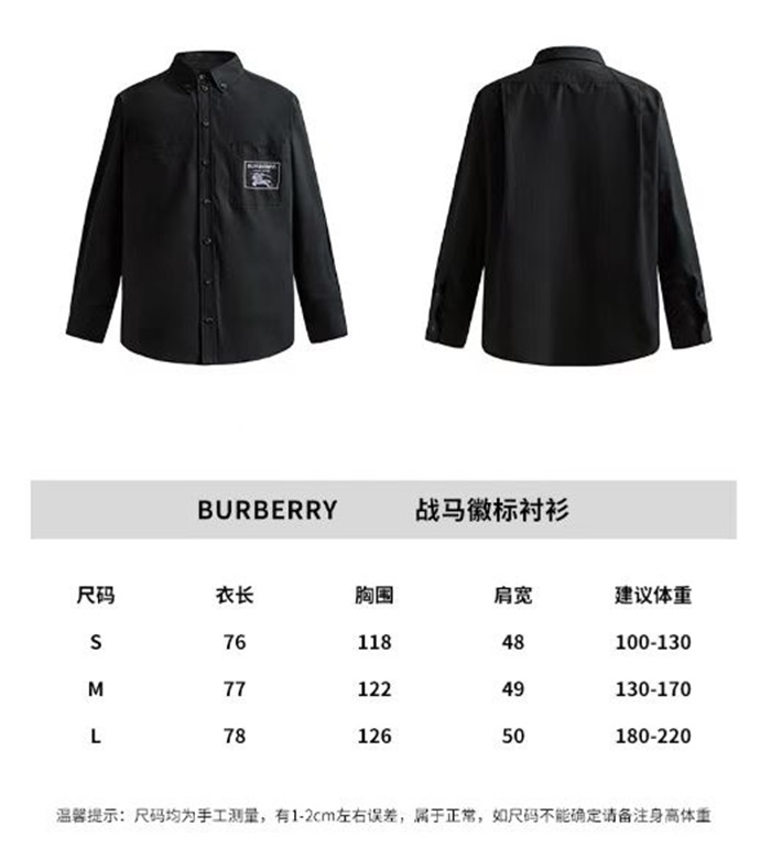 バーバリーメンズベーシックブラックシャツu145