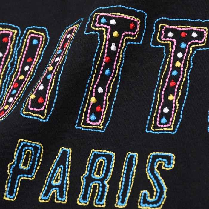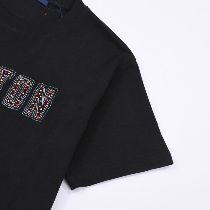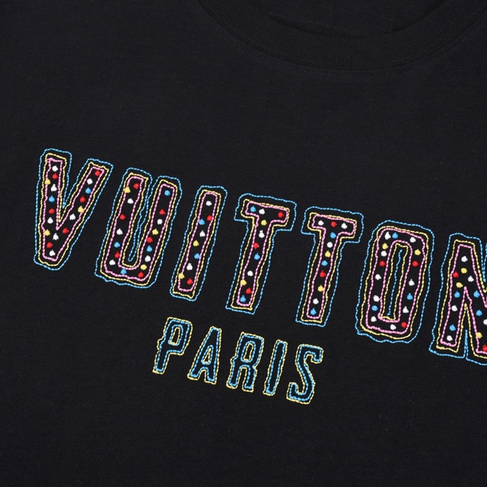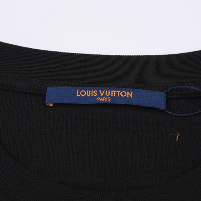 ルイヴィトンメンズブラッククルーネック半袖Tシャツv721