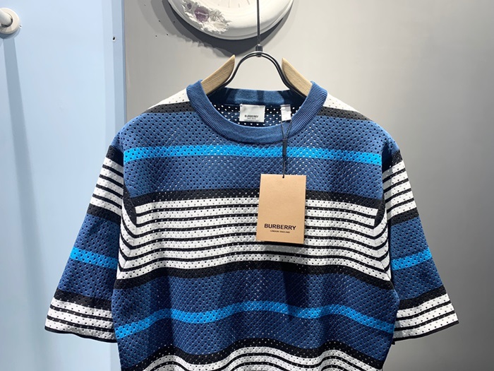 バーバリーメンズブルークルーネック半袖Tシャツu147
