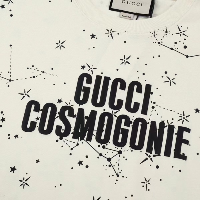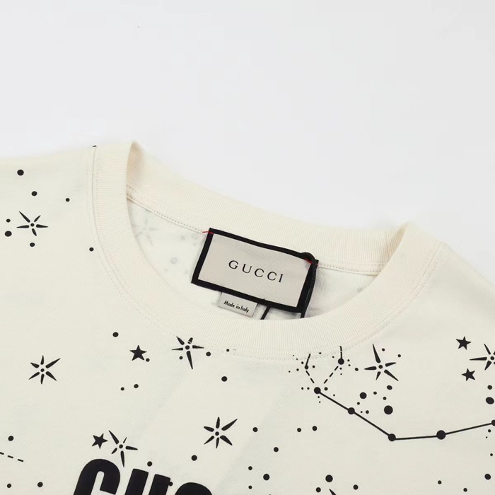 グッチユニセックスアイボリークルーネック半袖Tシャツu582