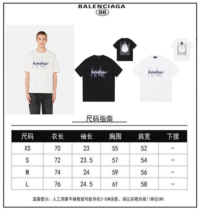 バレンシアガメンズブラッククルーネック半袖Tシャツu292