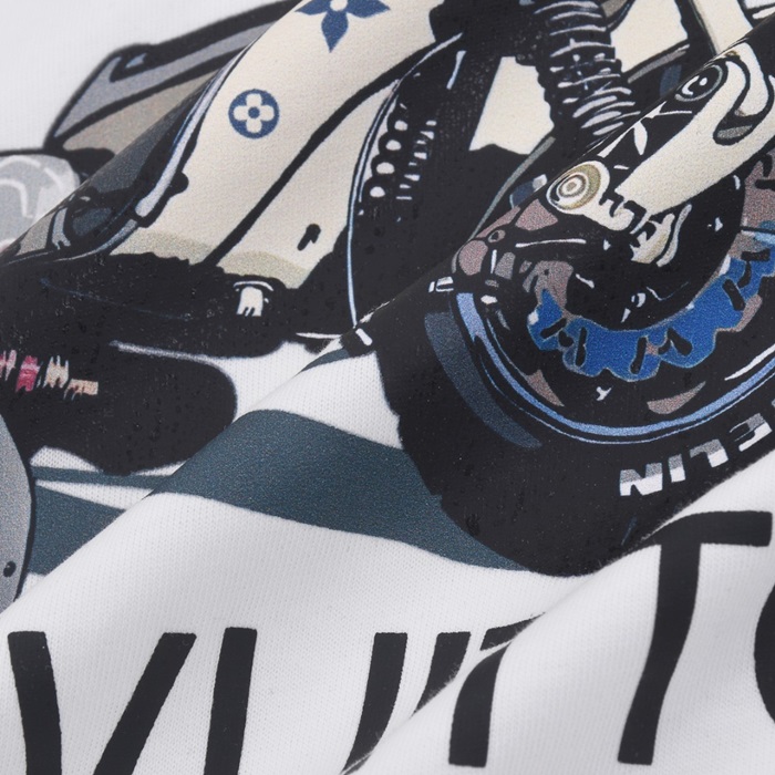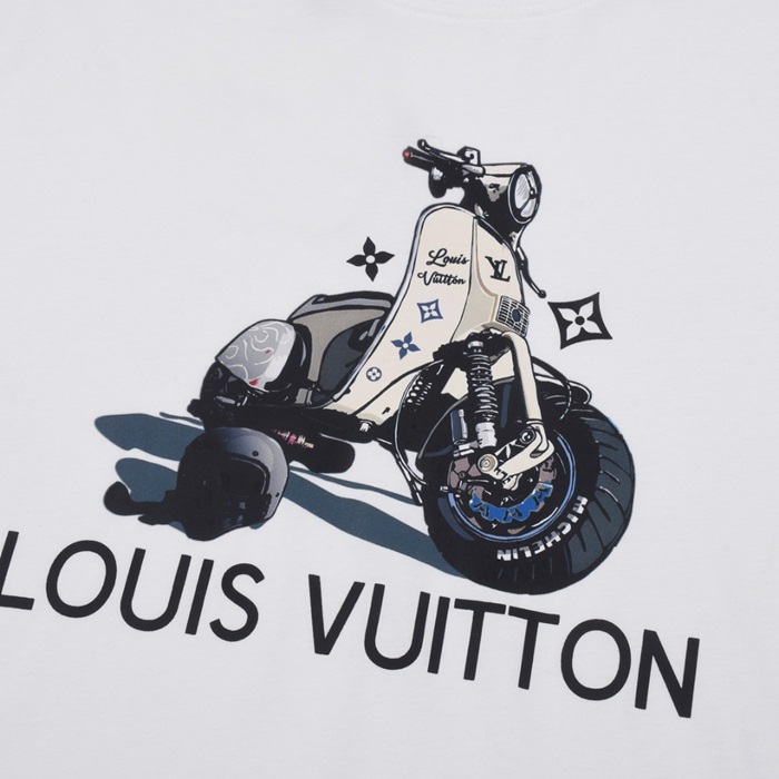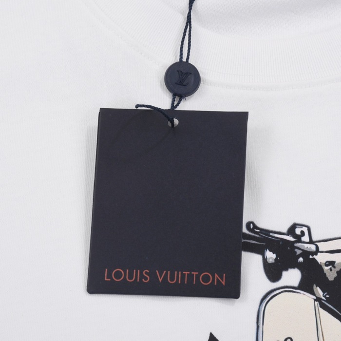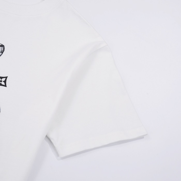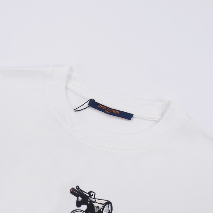 ルイヴィトンメンズホワイトクルーネック半袖Tシャツv729