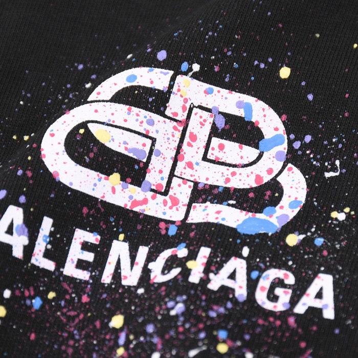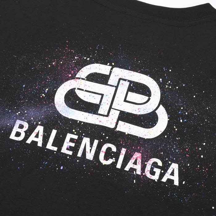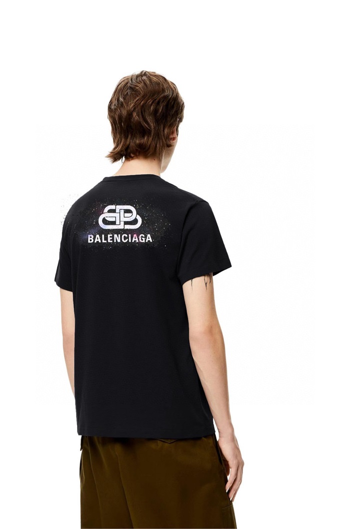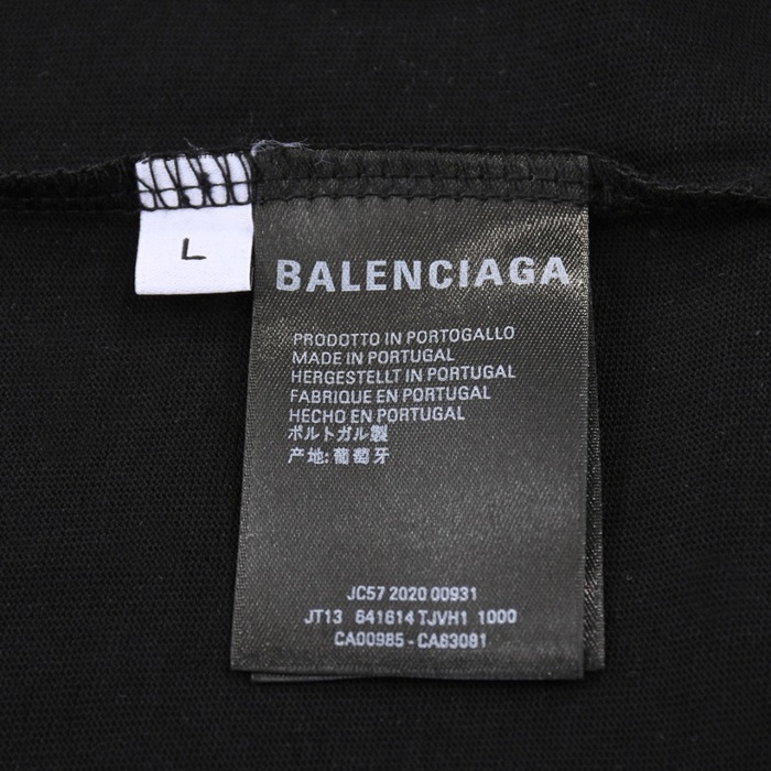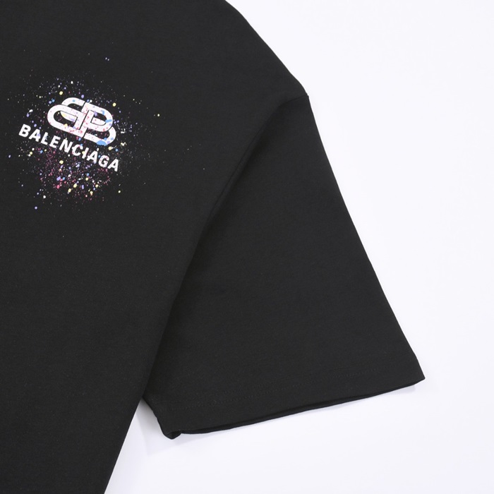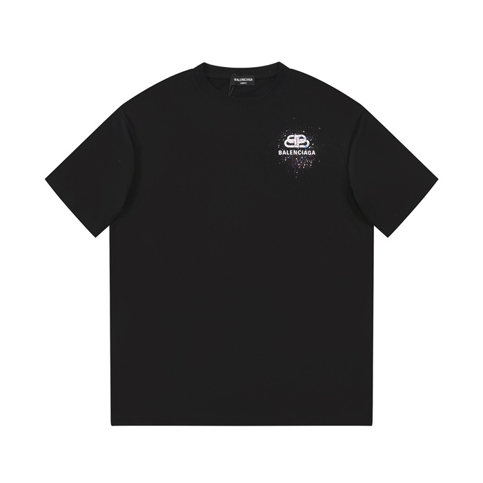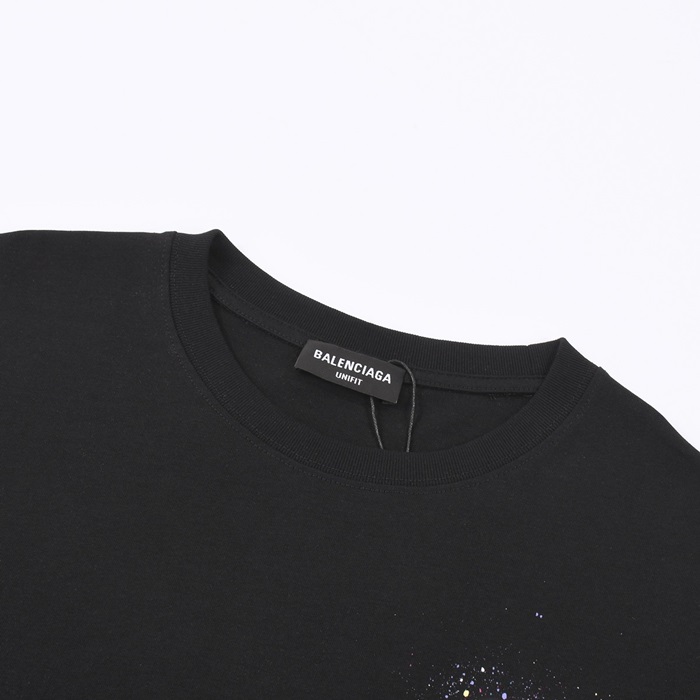 バレンシアガメンズブラッククルーネック半袖Tシャツa295