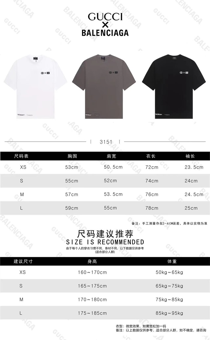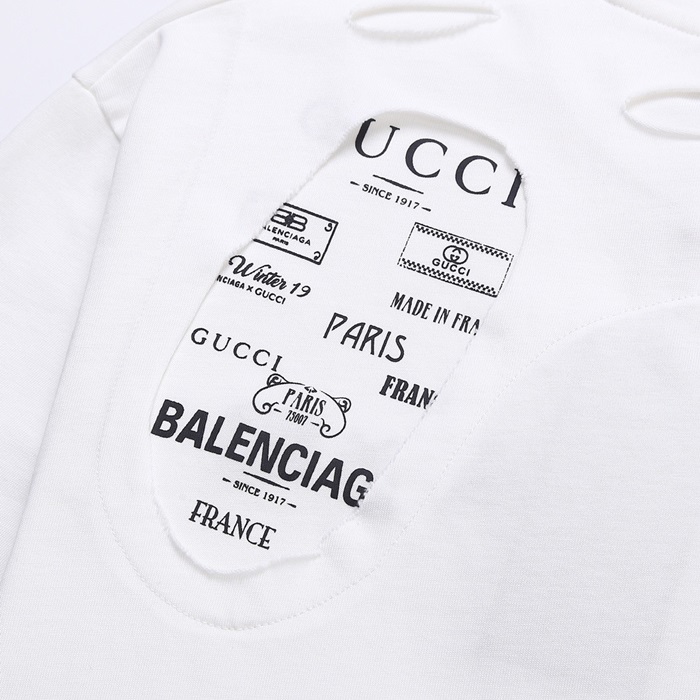 バレンシアガメンズホワイトクルーネック半袖Tシャツa298
