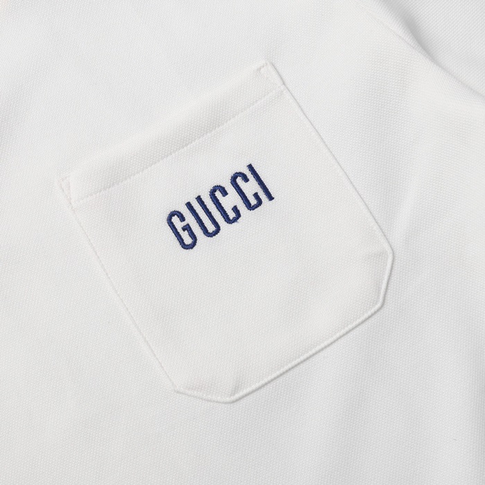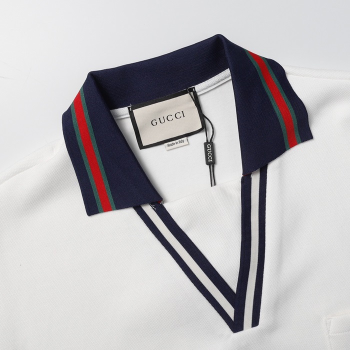 グッチユニセックスホワイトポロ半袖Tシャツu585
