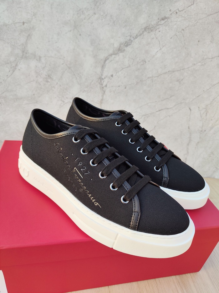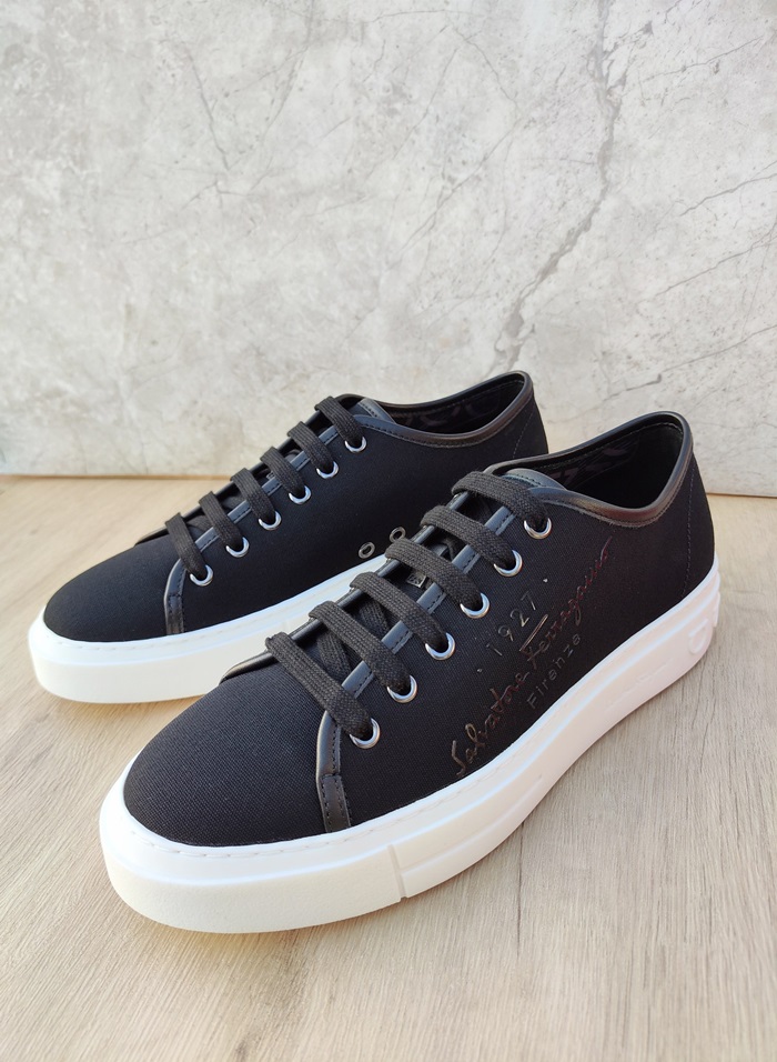 サルヴァトーレフェラガモメンズブラックスニーカーf07