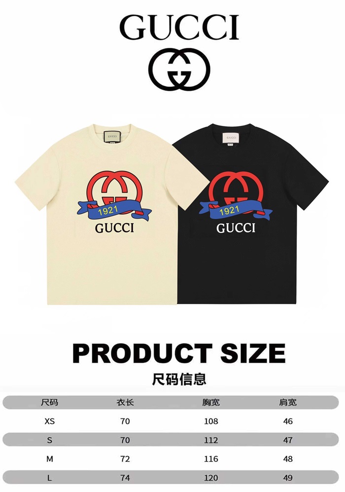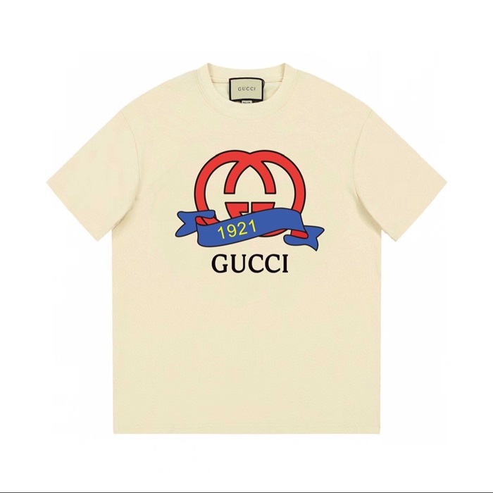 グッチユニセックスアイボリークルーネック半袖Tシャツu591