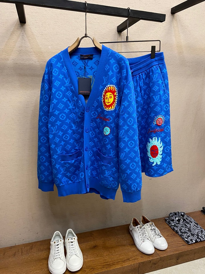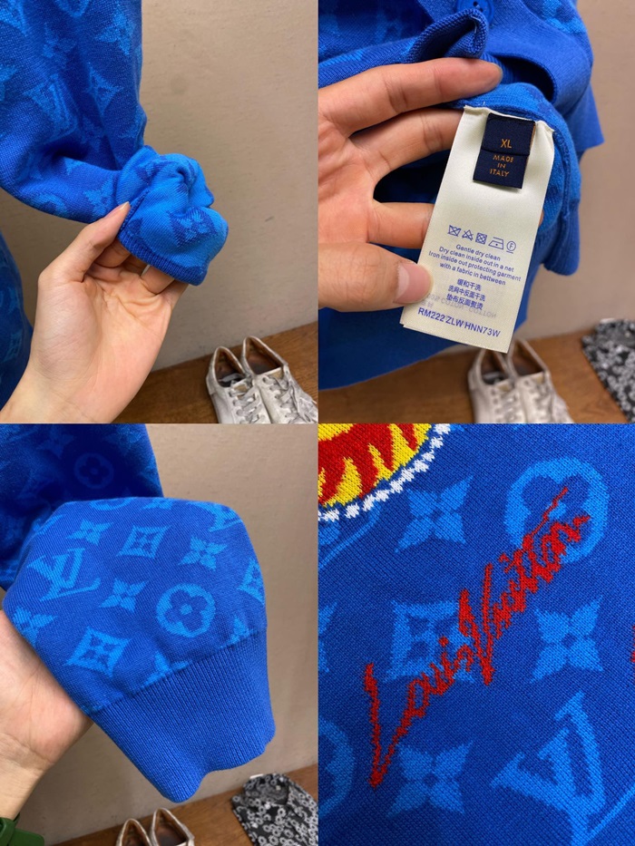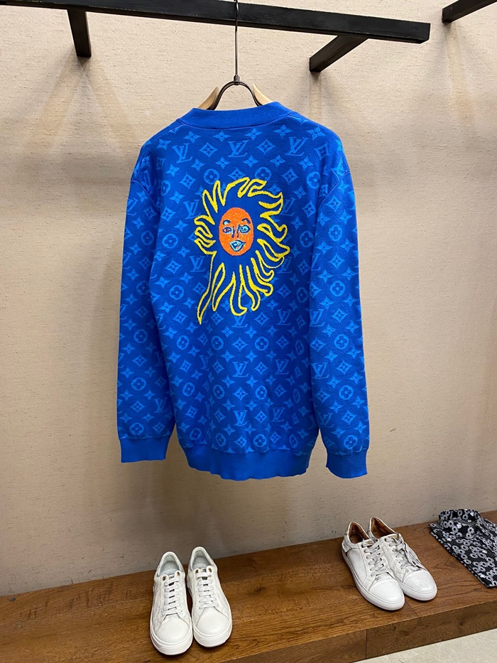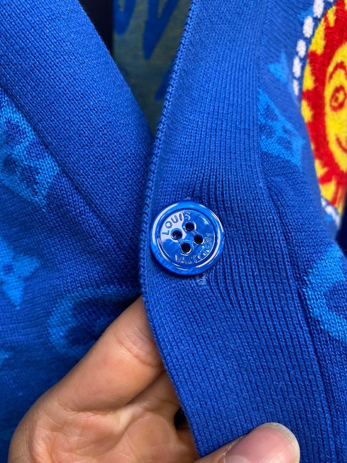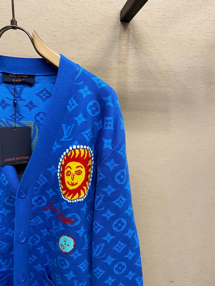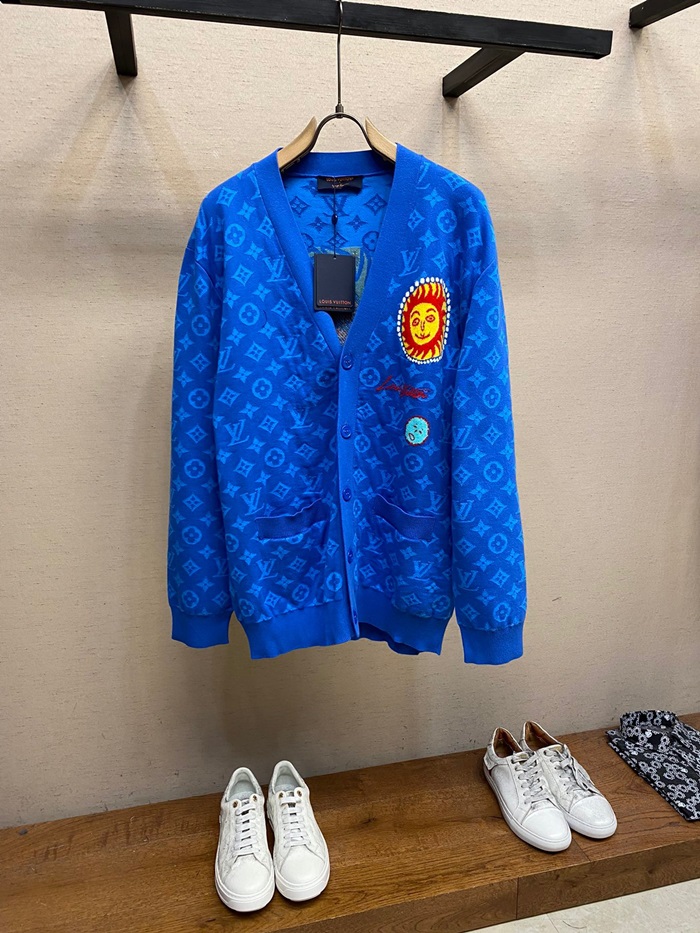ルイヴィトンメンズブルーネックカーディガンv775