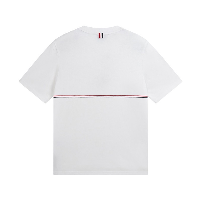 トムブラウンメンズクルーネックホワイト半袖Tシャツh47
