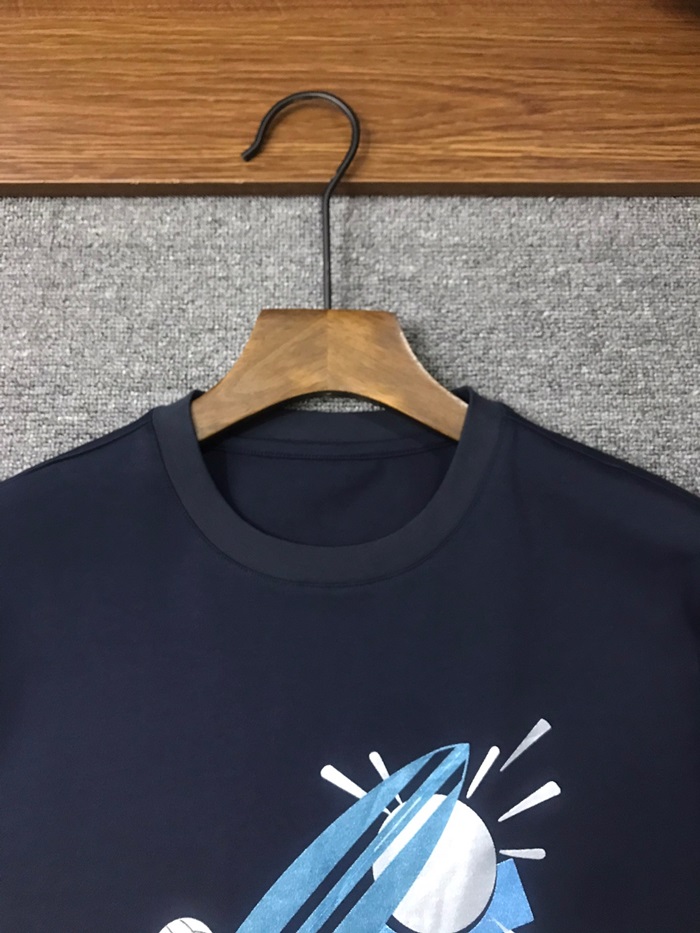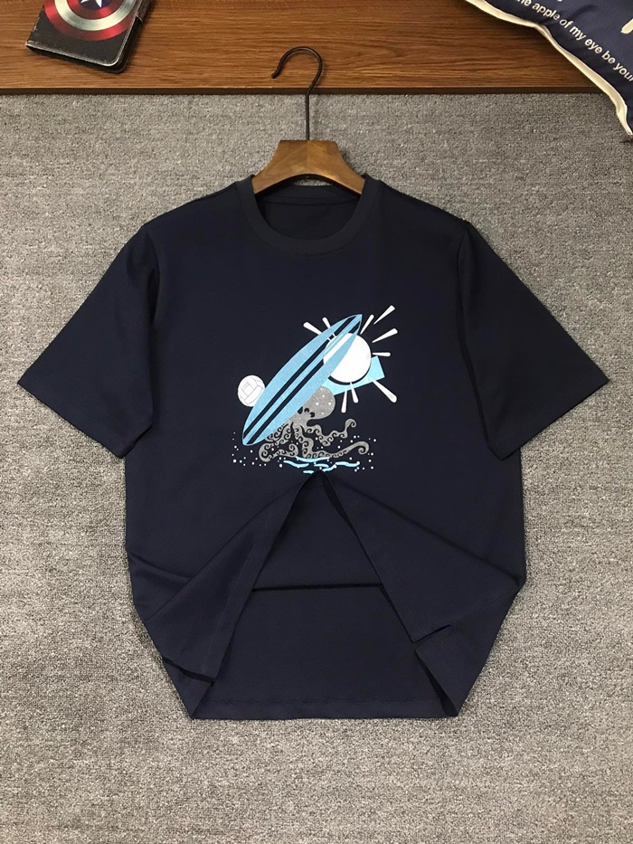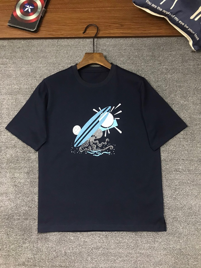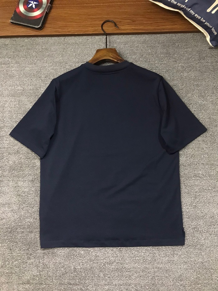 エルメスメンズネイビークルーネック半袖Tシャツe164