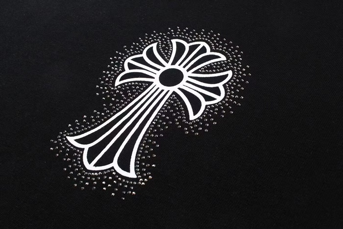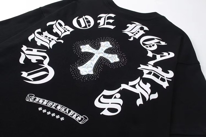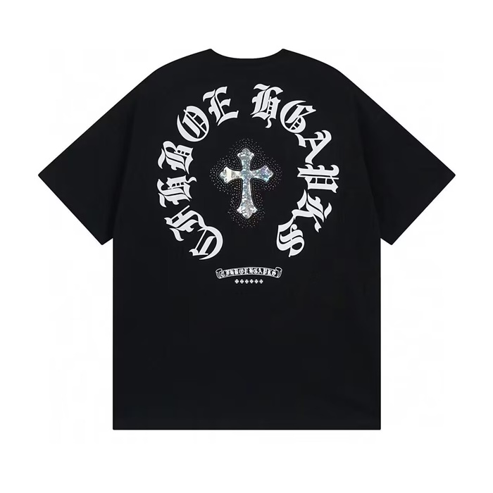 クロムハーツメンズブラッククルーネック半袖Tシャツh116