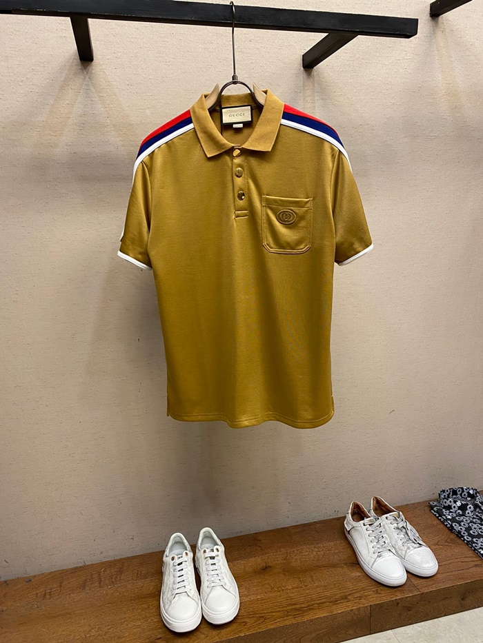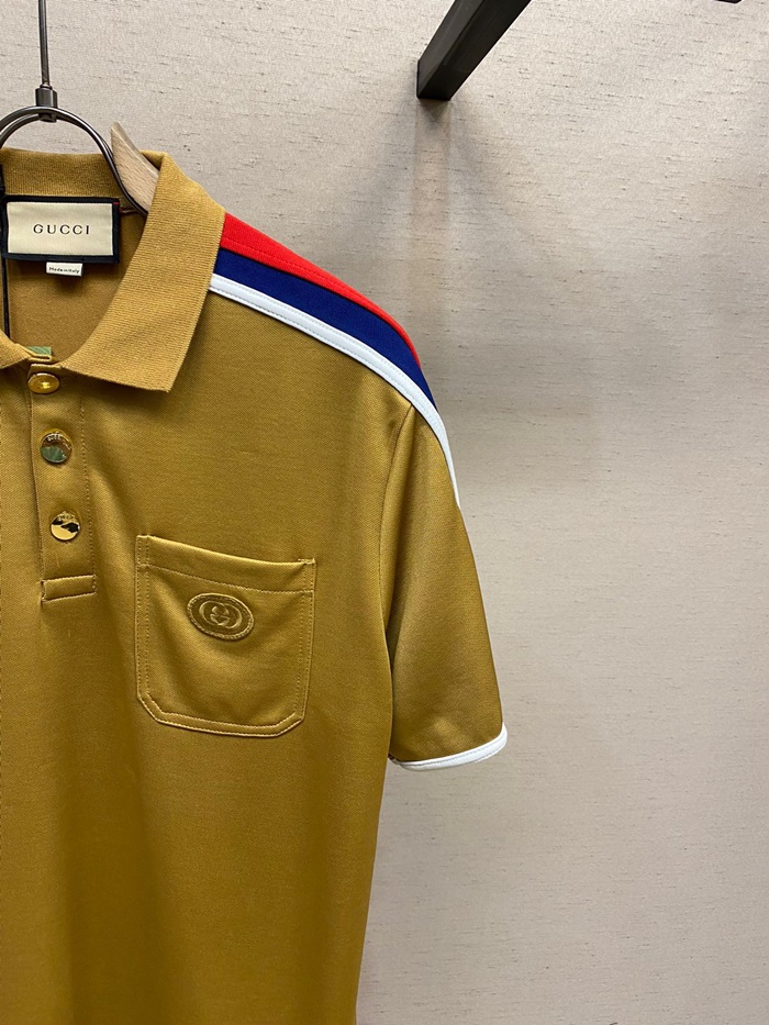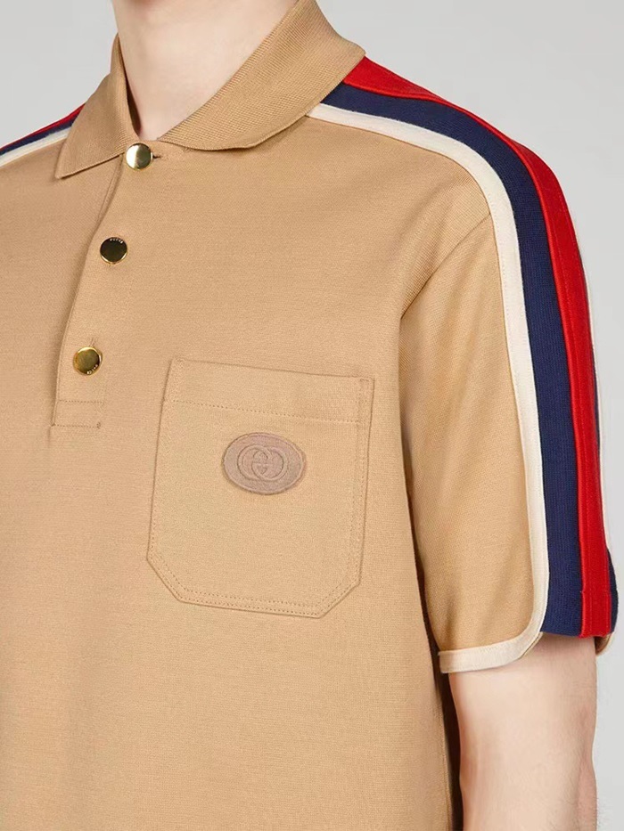 グッチメンズキャメルポロ半袖Tシャツu594