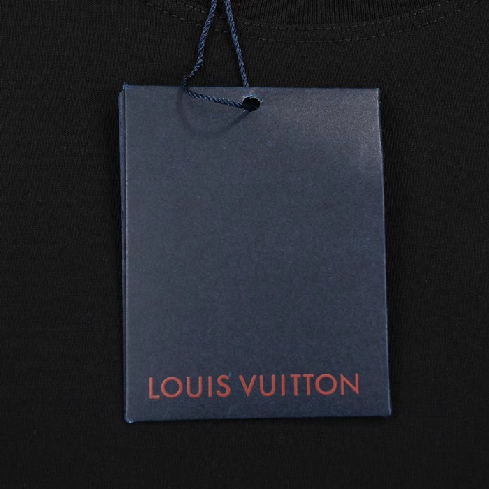 ルイヴィトンメンズブラッククルーネック半袖Tシャツv840