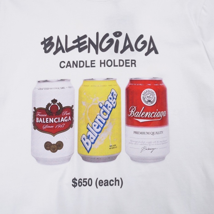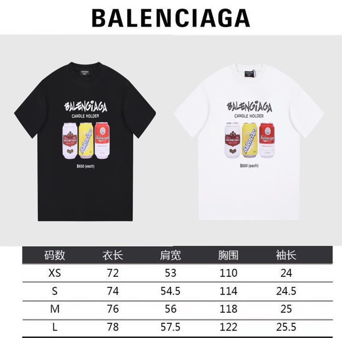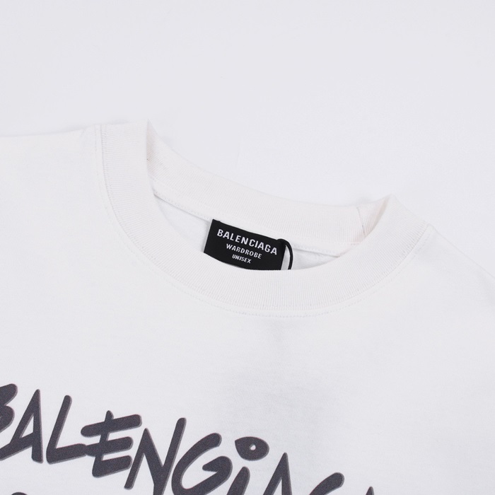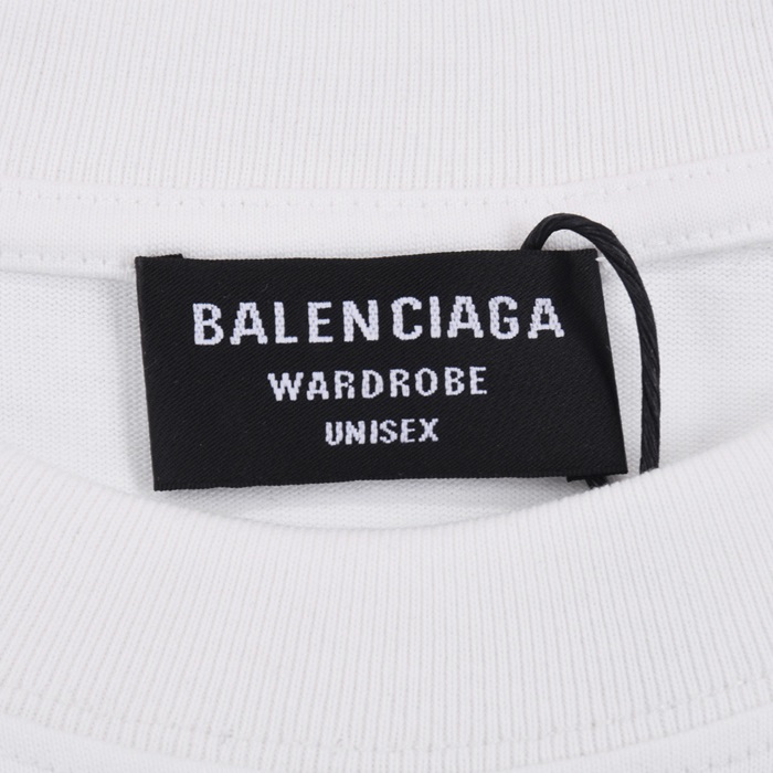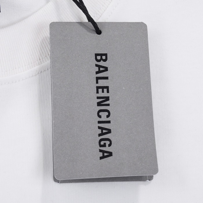 バレンシアガメンズホワイトクルーネック半袖Tシャツa348