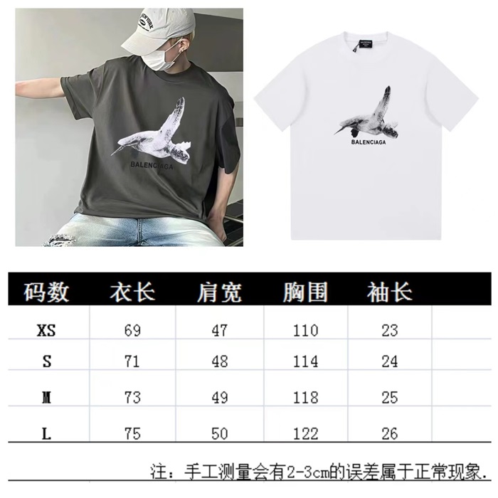バレンシアガメンズホワイトクルーネック半袖Tシャツa350