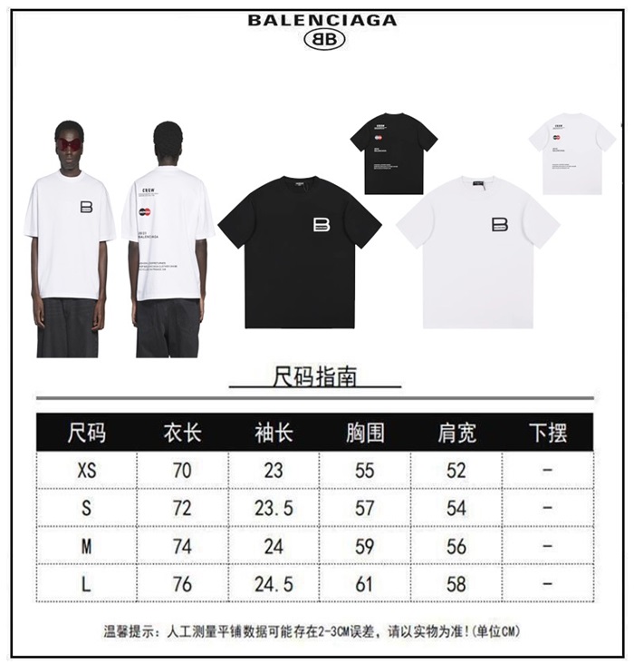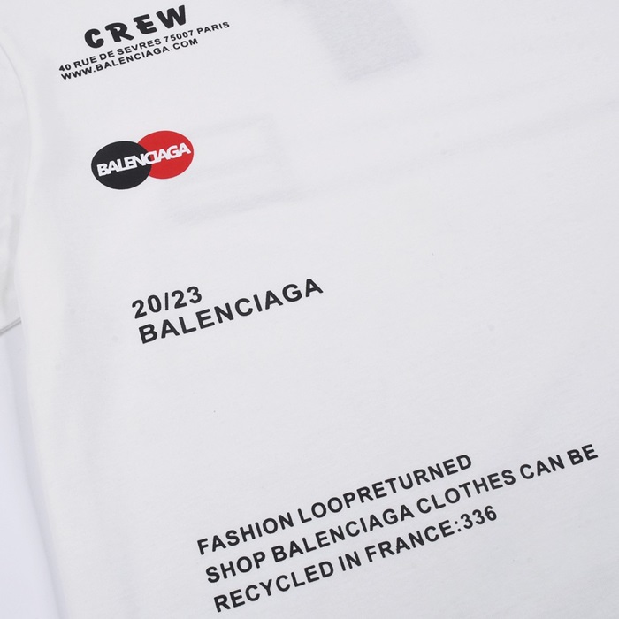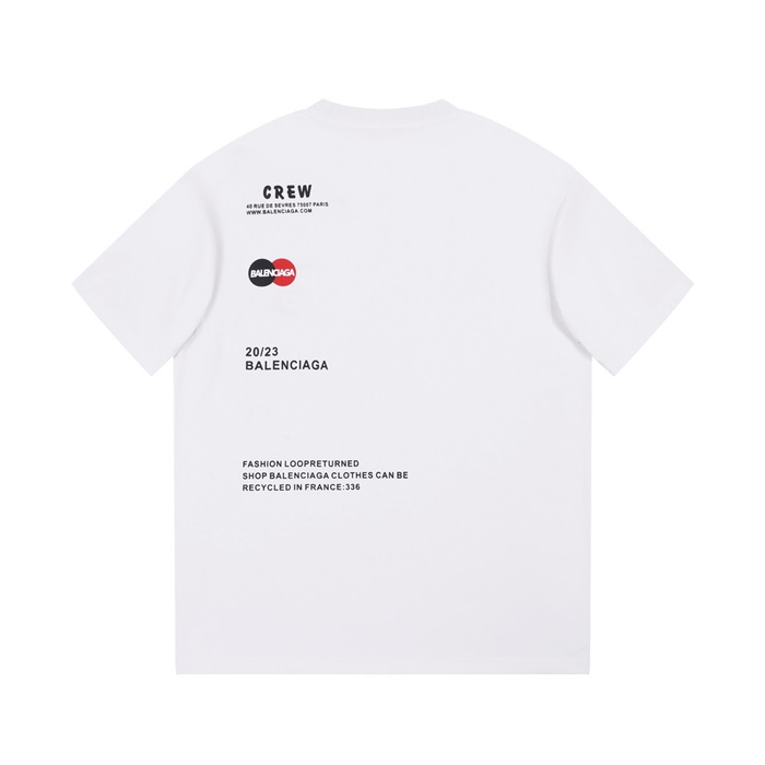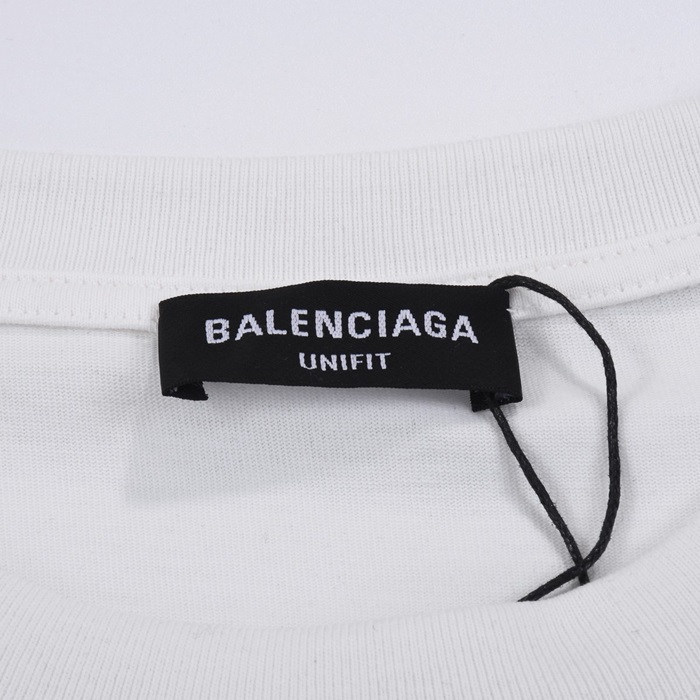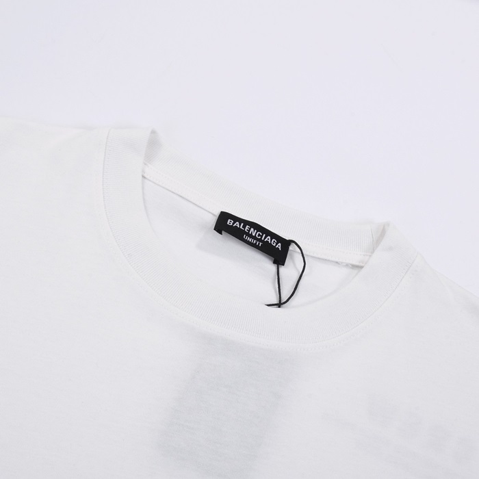 バレンシアガメンズホワイトクルーネック半袖Tシャツa352