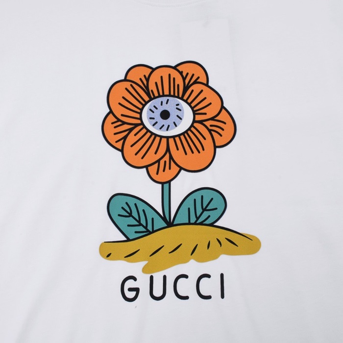 グッチユニセックスホワイトクルーネック半袖Tシャツu643