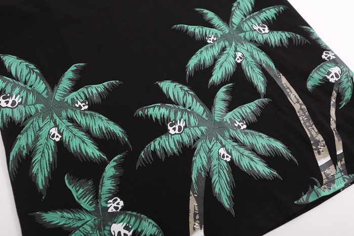 パームエンジェルスメンズブラッククルーネック半袖Tシャツm398