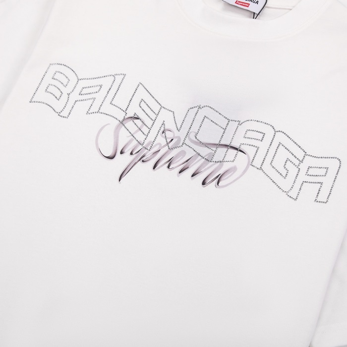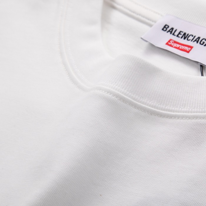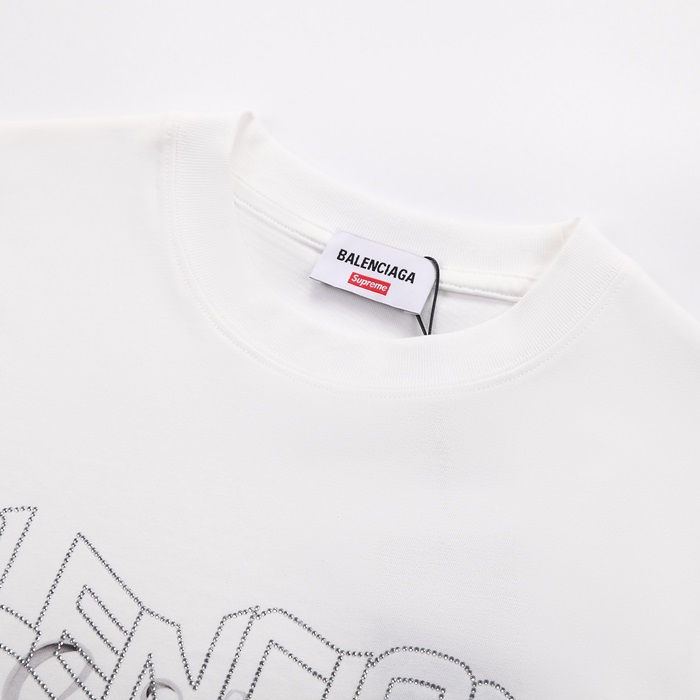 バレンシアガメンズホワイトクルーネック半袖Tシャツa353