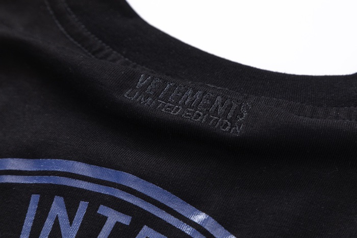 ヴェトモンユニセックストレンディブラック半袖Tシャツt324
