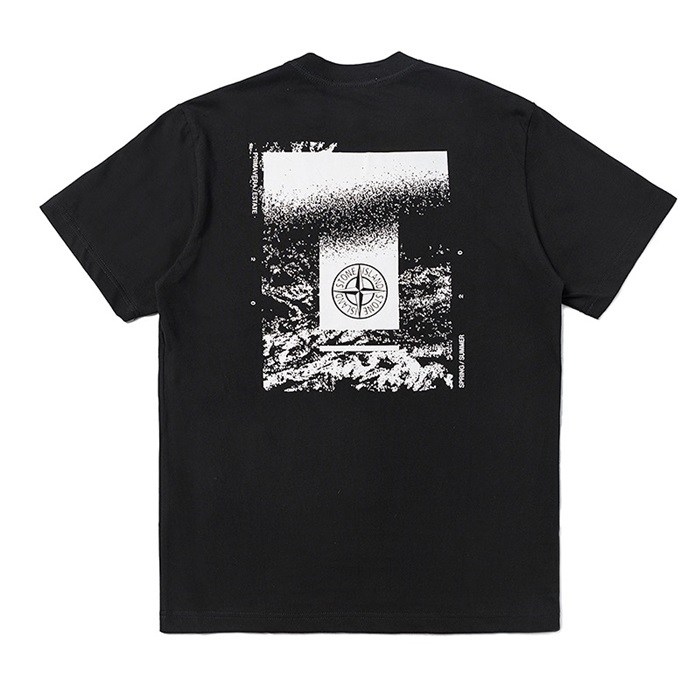 ストーンアイランドメンズブラッククルーネック半袖Tシャツt61