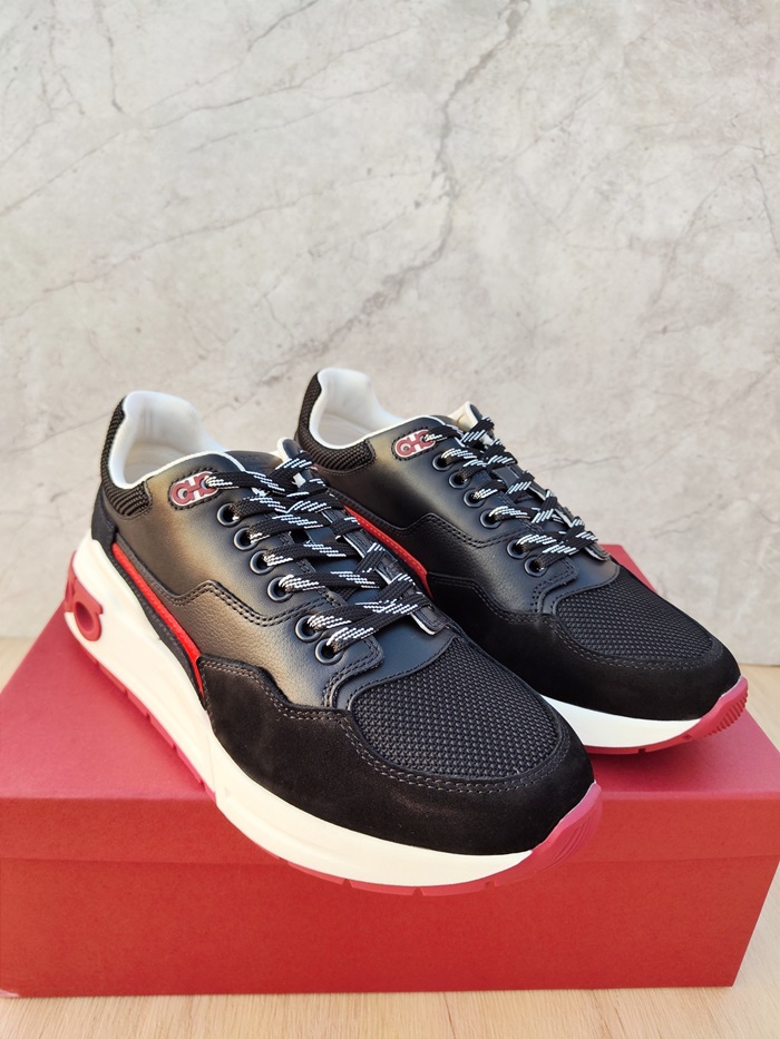 サルヴァトーレフェラガモメンズブラックスニーカーf10