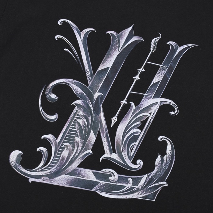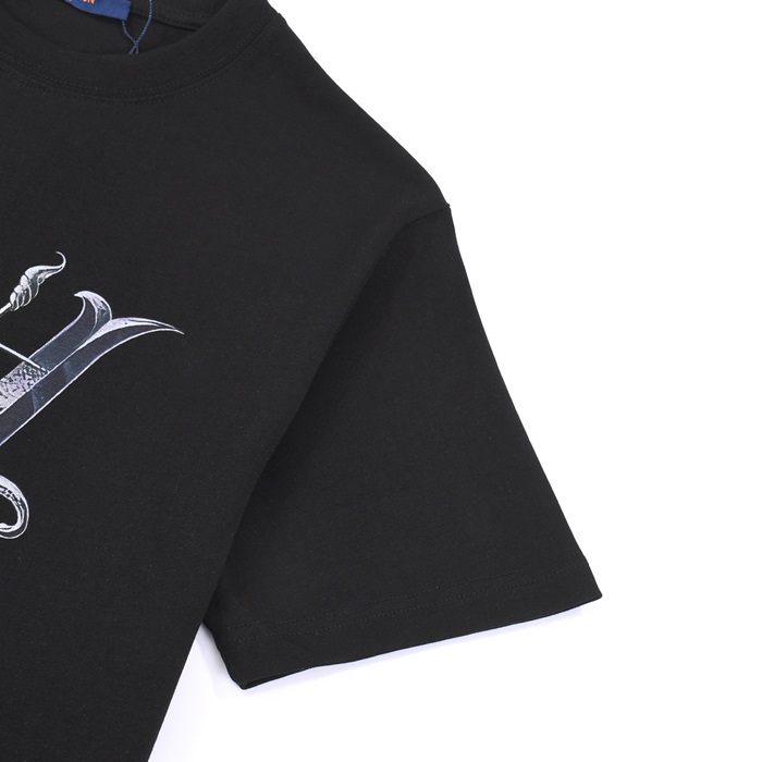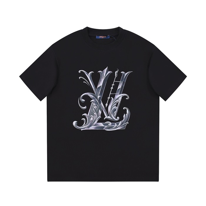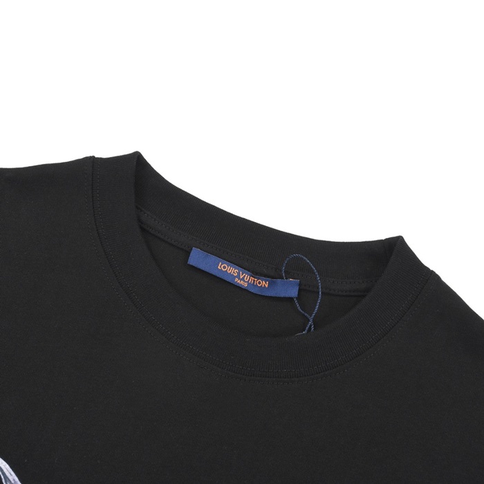 ルイヴィトンメンズブラッククルーネック半袖Tシャツv859