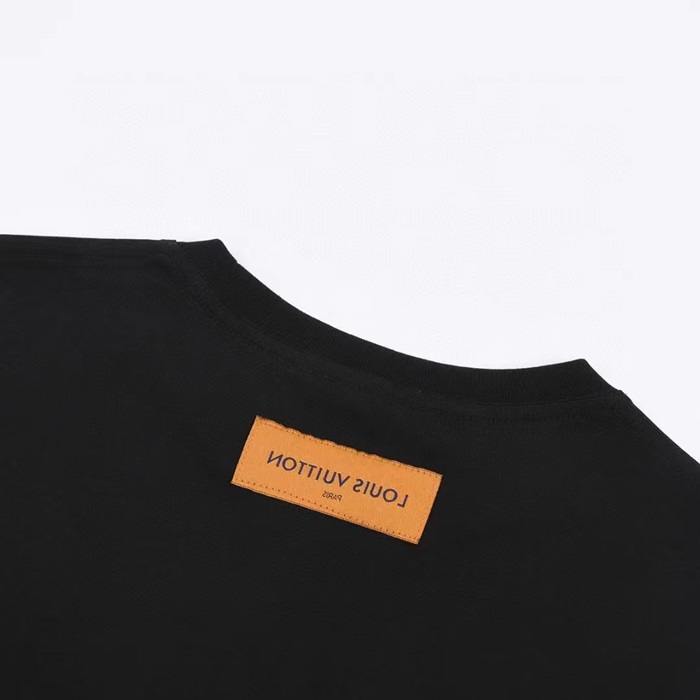 ルイヴィトンメンズブラッククルーネック半袖Tシャツv863